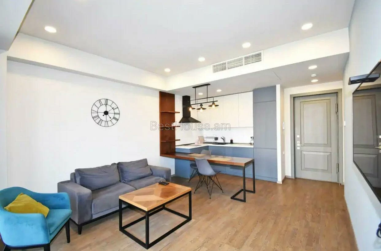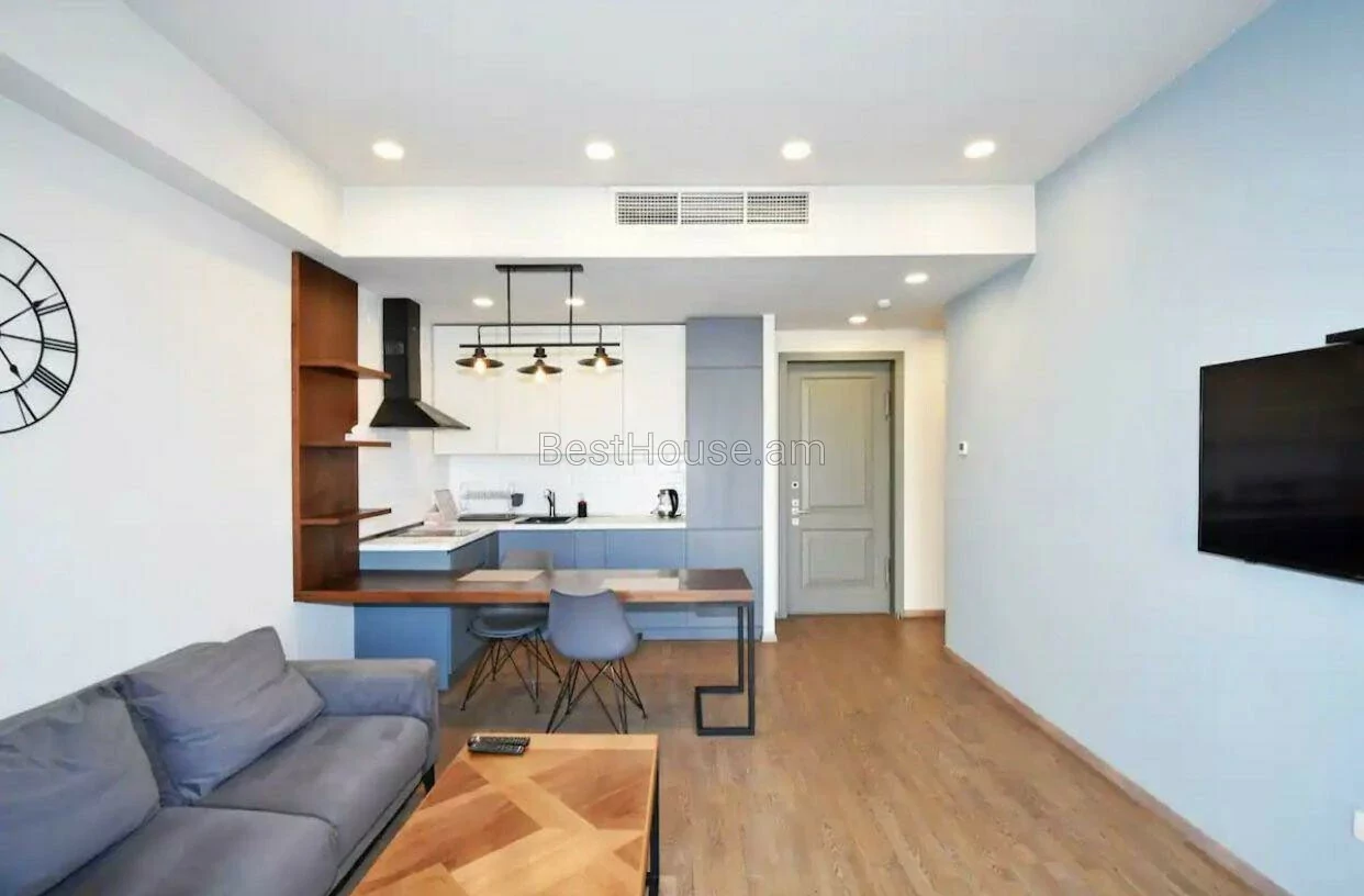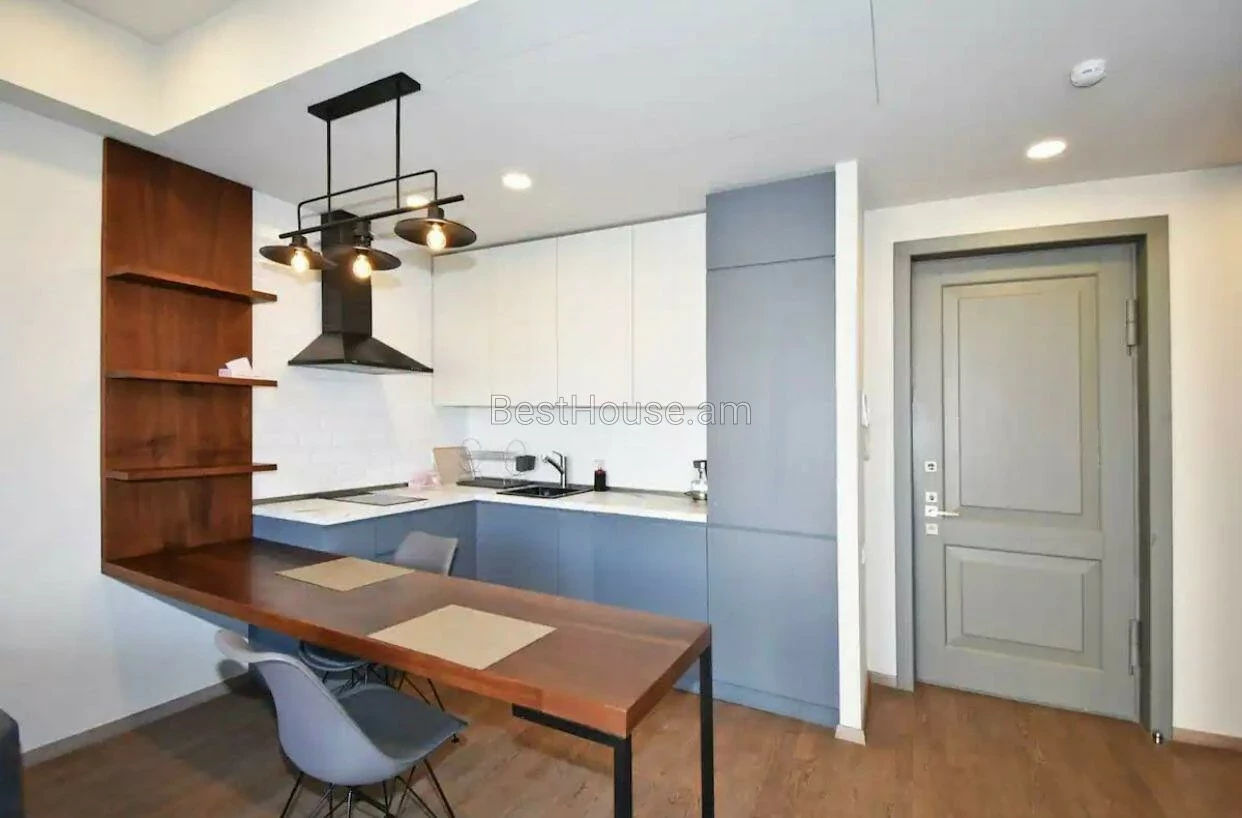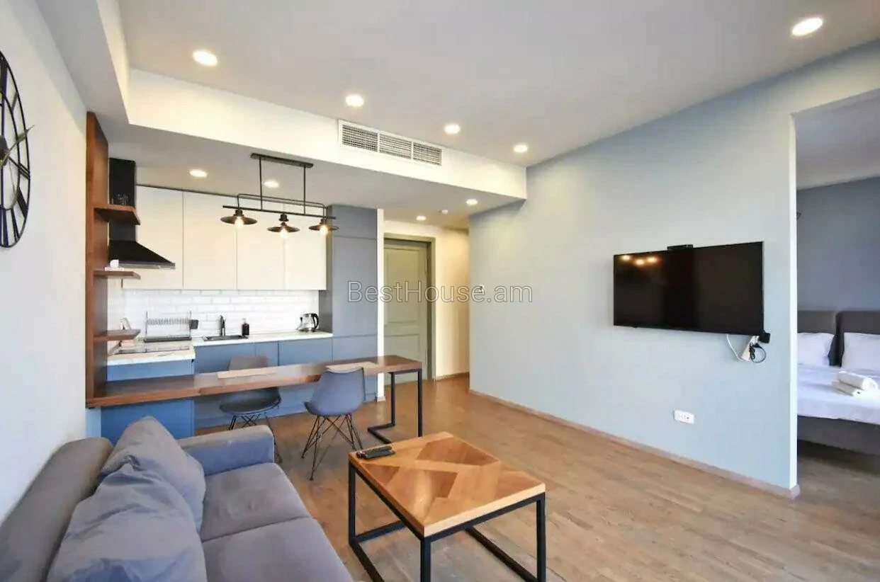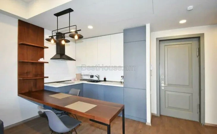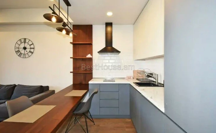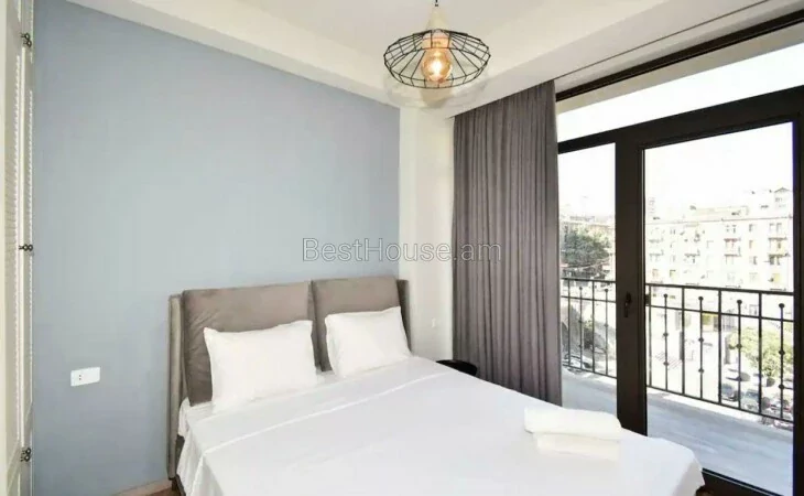 A 2-room designer-style renovated, sunny apartment, equipped with property and equipment, is for rent on Buzandi Street.