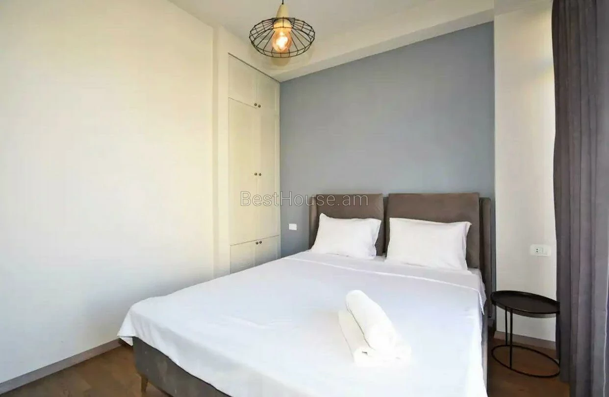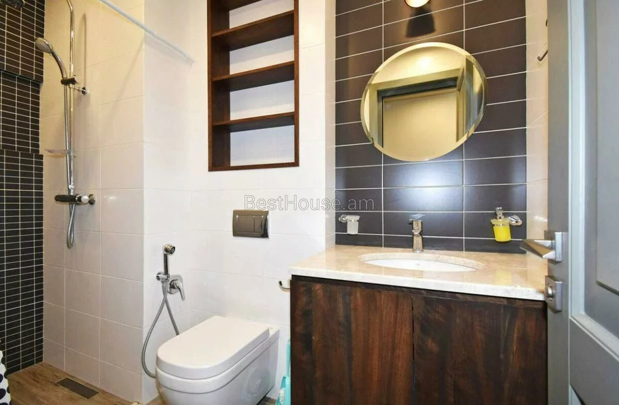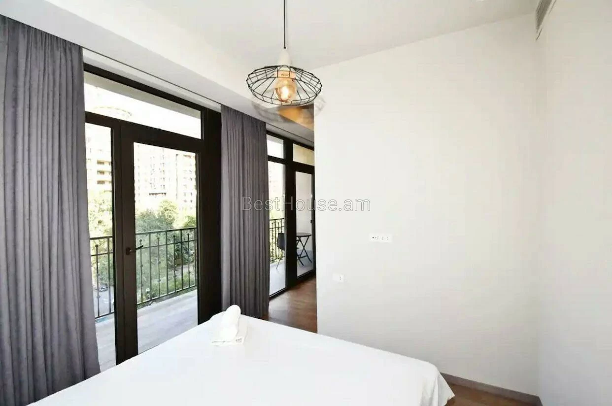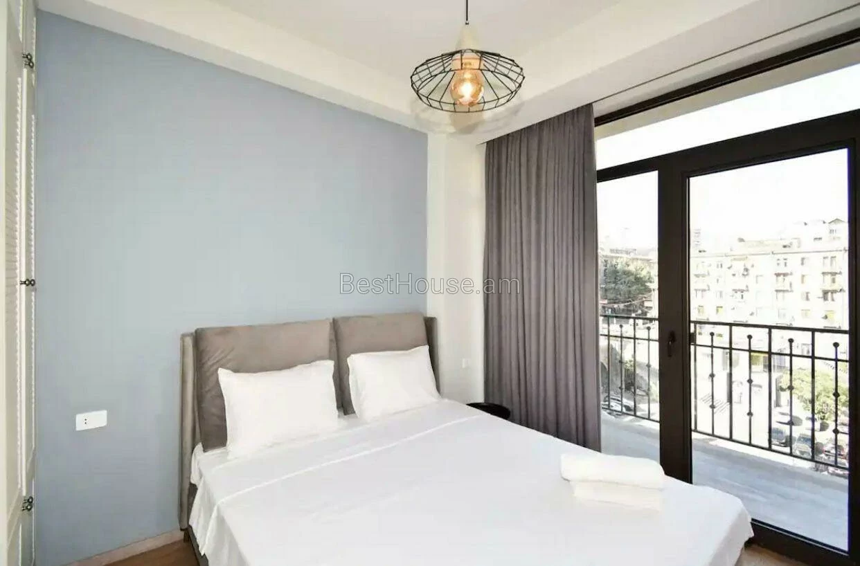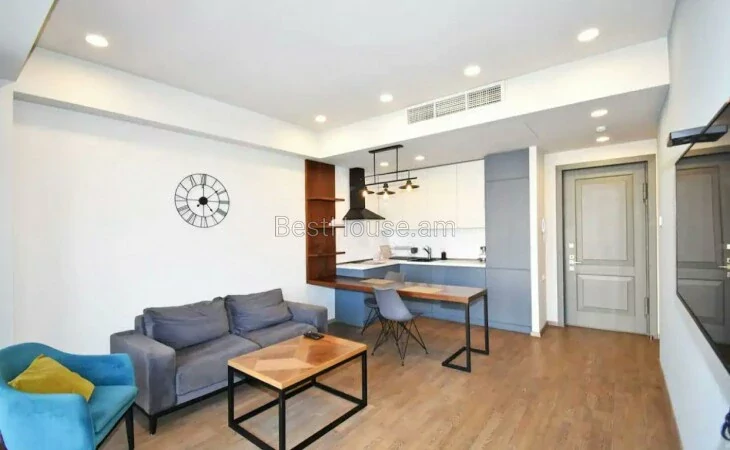 A 2-room designer-style renovated, sunny apartment, equipped with property and equipment, is for rent on Buzandi Street.