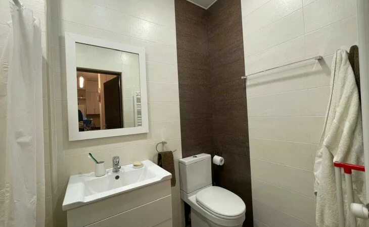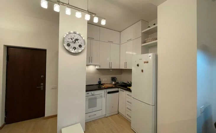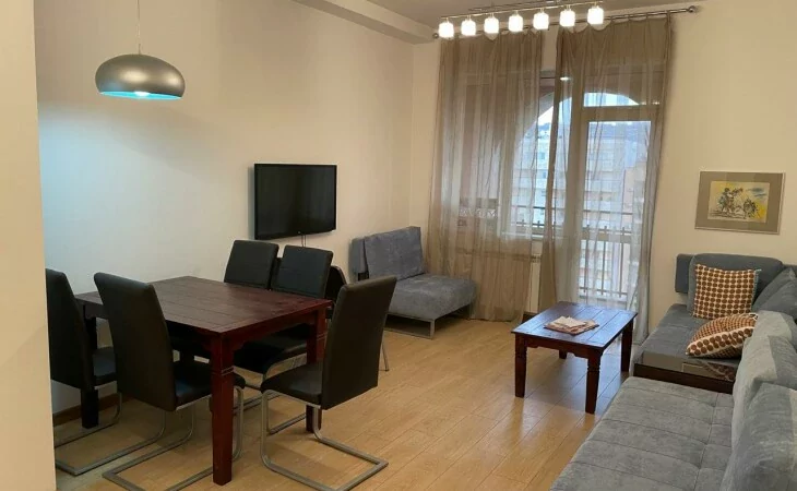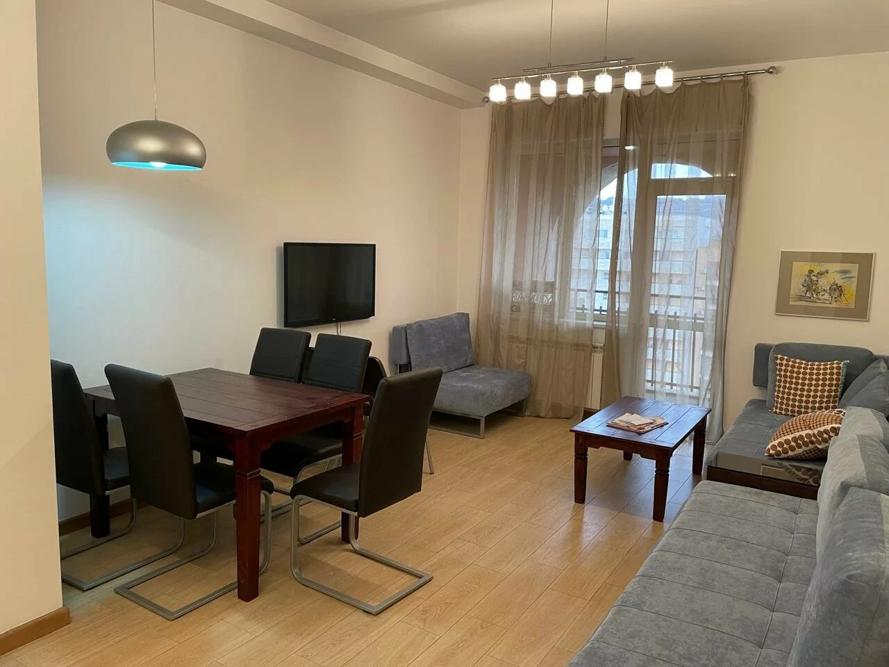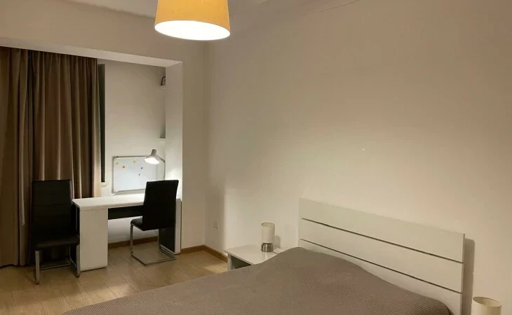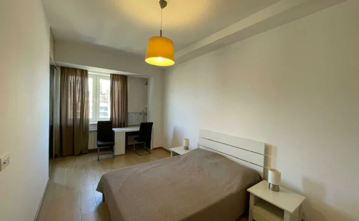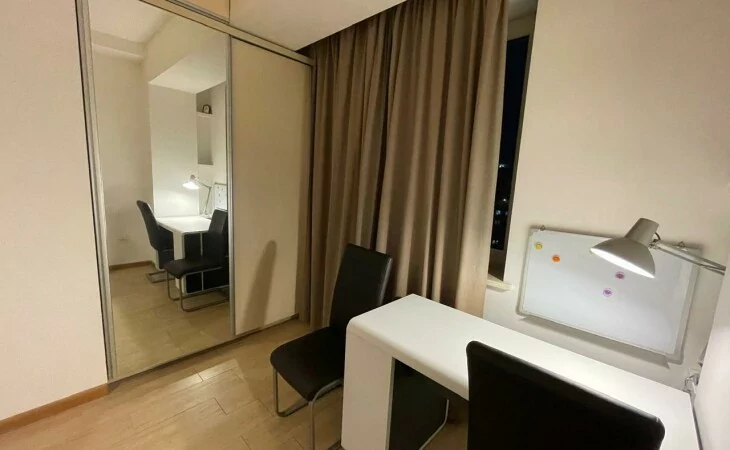 ...A 2-room apartment is for rent in the Small Center, a newly built elite building. The apartment has been fully renovated, the heating is provided by a centralized system, an air conditioner is installed. All rooms are beautifully furnished and equipped with modern appliances. The bathroom is tiled, equipped with the necessary plumbing. There is an open balcony. The building has 2 elevators, a security system. All shops, banks and entertainment venues are nearby.
