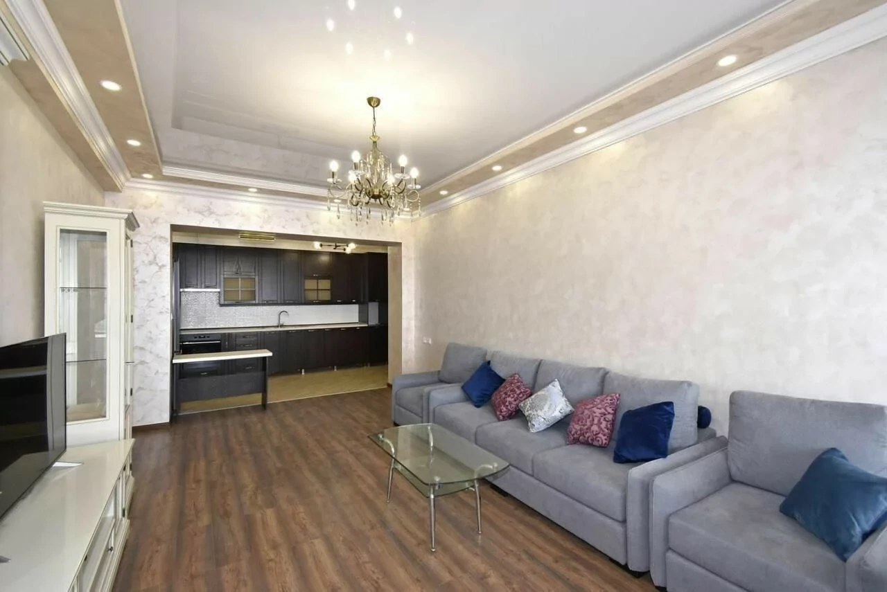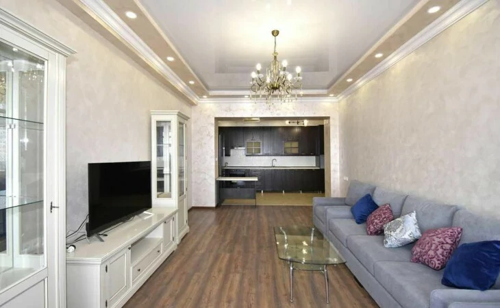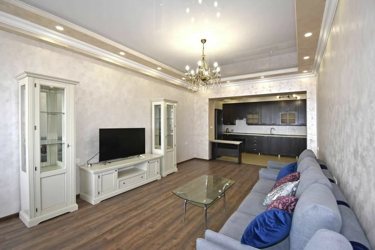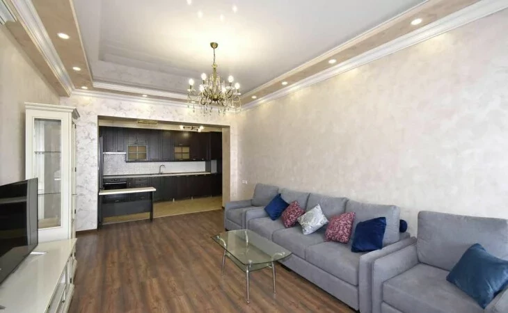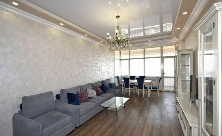 ...A spacious 2-room, 116 sq m bright apartment is for rent, located on the 3rd floor of a 13-story newly built monolithic building, on Tsitsernakaberd highway, next to the Dalma shopping center. The apartment has been fully renovated, individual heating and air conditioning systems have been installed, the floor is covered with high-quality laminate, the bathroom is tiled with European tiles and is equipped with plumbing fixtures. The kitchen and rooms are beautifully furnished, equipped with high-quality appliances and all necessary accessories. There is internet and cable TV. There is a spacious open balcony with a beautiful view of Yerevan. The building has 2 elevators, a security system, an underground parking lot and a playground.