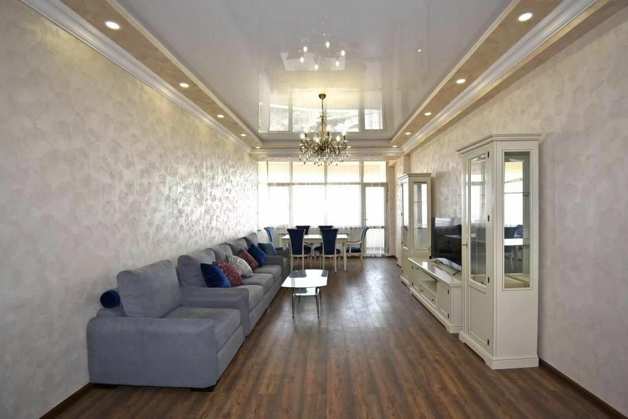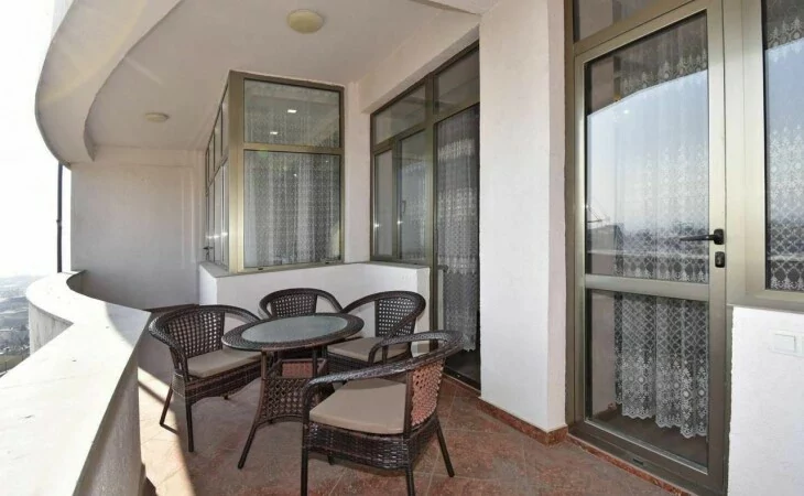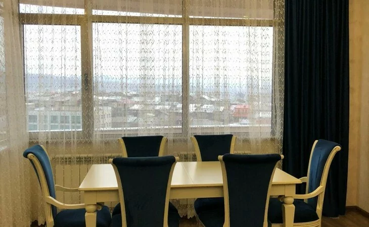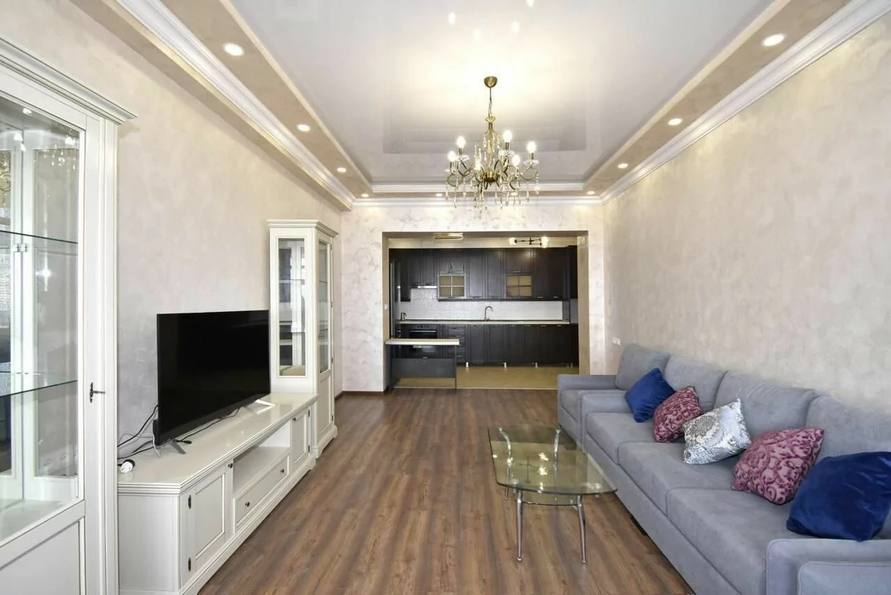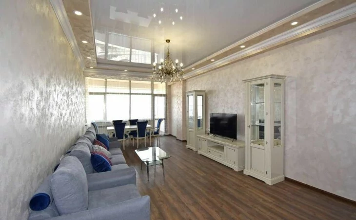 ...A spacious 2-room, 116 sq m bright apartment is for rent, located on the 3rd floor of a 13-story newly built monolithic building, on Tsitsernakaberd highway, next to the Dalma shopping center. The apartment has been fully renovated, individual heating and air conditioning systems have been installed, the floor is covered with high-quality laminate, the bathroom is tiled with European tiles and is equipped with plumbing fixtures. The kitchen and rooms are beautifully furnished, equipped with high-quality appliances and all necessary accessories. There is internet and cable TV. There is a spacious open balcony with a beautiful view of Yerevan. The building has 2 elevators, a security system, an underground parking lot and a playground.