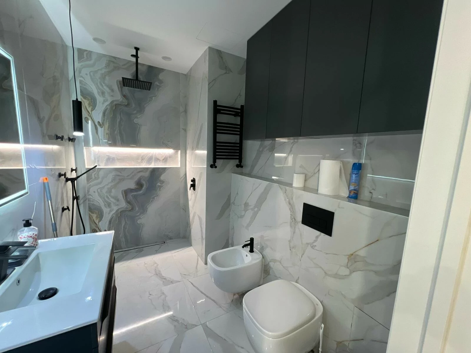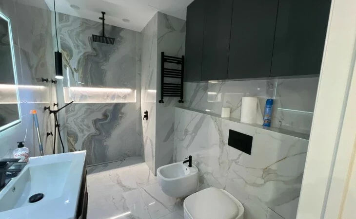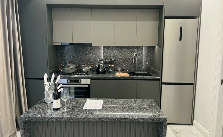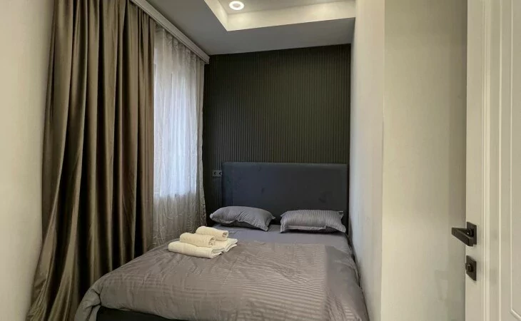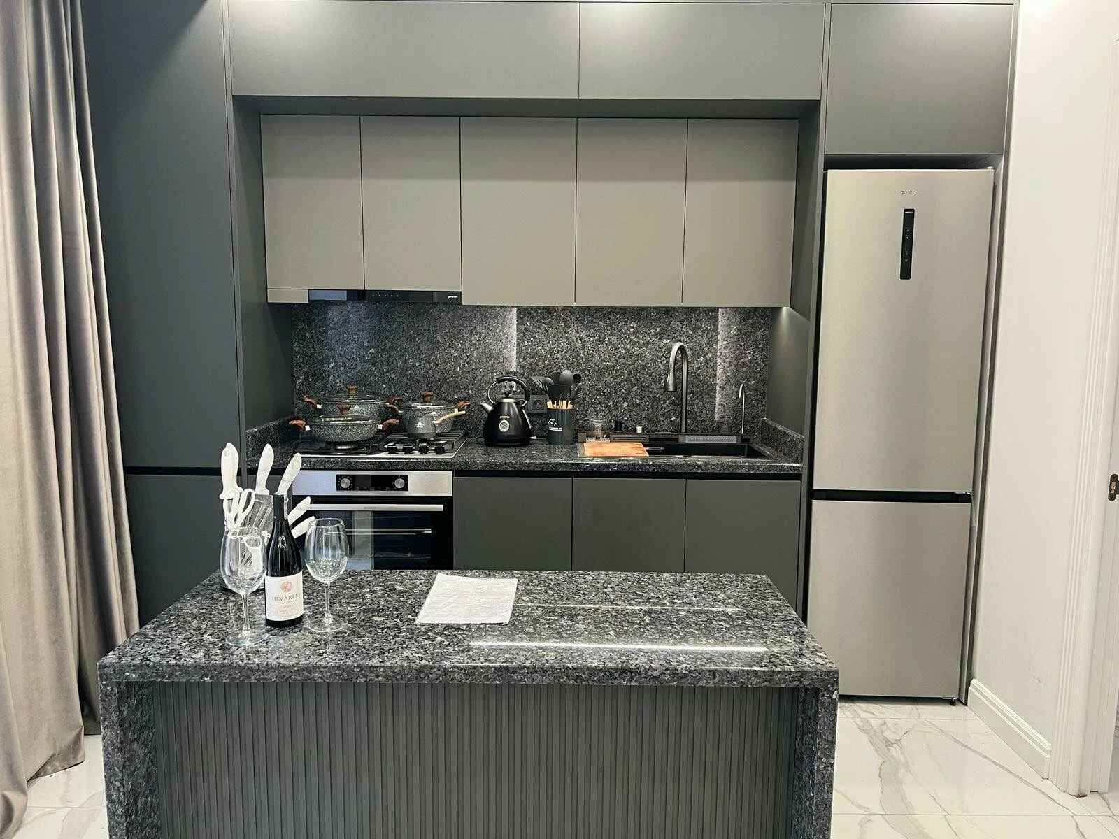 A 2-room apartment with all amenities is for rent in a newly built building. All public infrastructure is nearby. The apartment has been renovated and is not yet inhabited. It is sunny and has an open balcony.