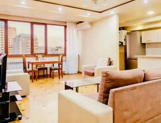 A 3-room apartment is for rent in the Center, on Amiryan Street. The apartment is fully renovated, equipped with furniture/appliances, there is also a dishwasher. It has 2 open balconies, 2 bathrooms, tiled and equipped with plumbing.