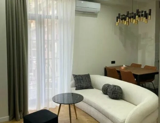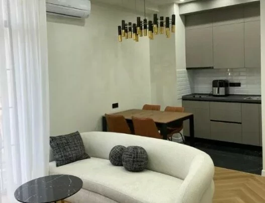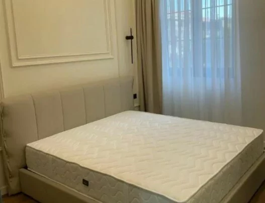 For rent is a 3-room apartment with an area of 90 sq. M., located on the 8th floor of a 11-story new building. The apartment has been fully renovated. An iron door, euro windows, and air conditioning have been installed. It is heated by a heating system. It is provided with round-the-clock water and gas supply. The bathroom is tiled and equipped with plumbing. There is an open balcony. The apartment is equipped with furniture and appliances.