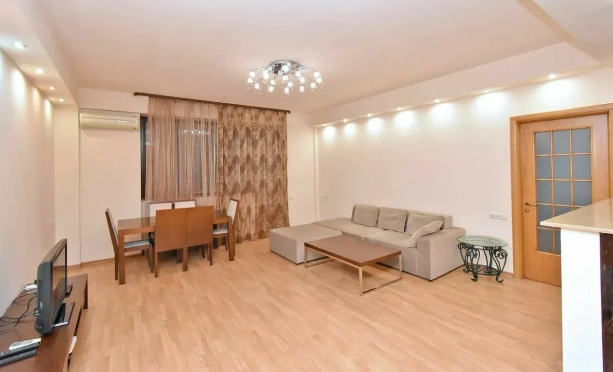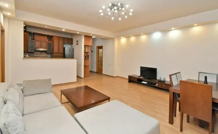 For rent 2-room apartment in a newly built building on Saryan Street, 70 sq m, 4/6 floor, the apartment is equipped with necessary furniture and appliances.