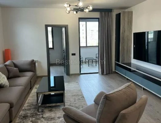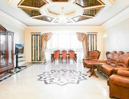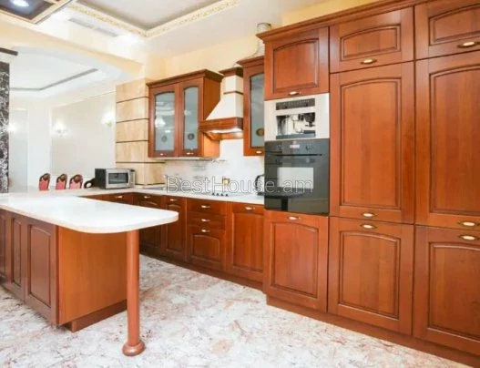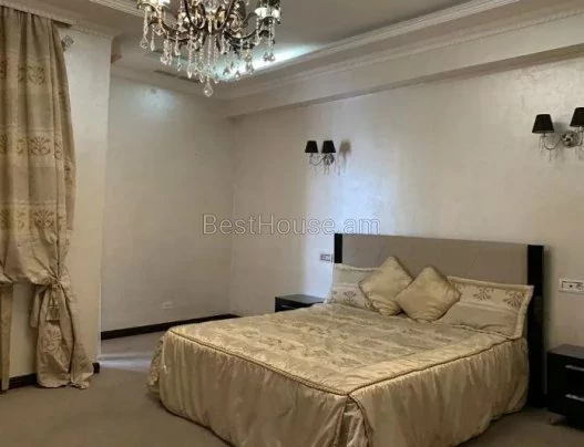 ...A beautiful and bright 5-room apartment is for rent near the English Garden, in a newly built elite building. The apartment is equipped with all utilities, furniture and appliances, the floor is covered with high-quality parquet. The apartment has a separate kitchen and living room, 3 bedrooms, 1 study, 4 bathrooms, 1 balcony-terrace, overlooking the garden. There is also a centralized heating and ventilation system. There is a security system with a guard post, an underground parking lot is provided with the apartment. There is also a playground.