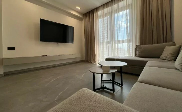 A 2-room apartment is for rent in a newly built building on Arshakunyats Avenue, the apartment is equipped with the necessary furniture and appliances.
