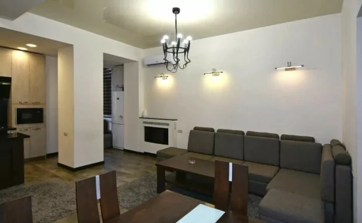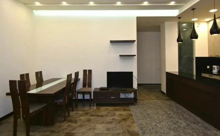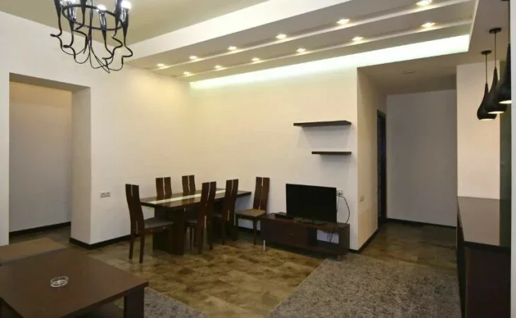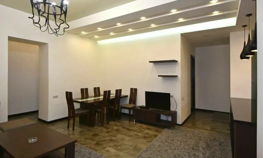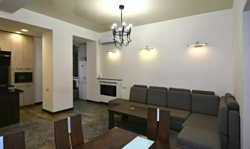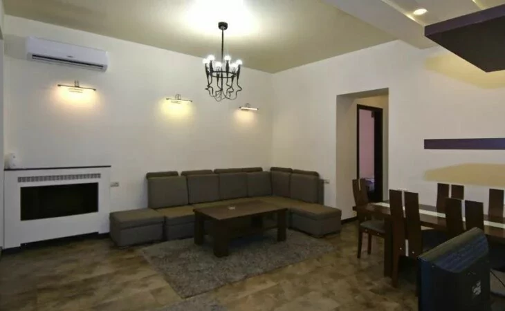 For rent is a 3-bedroom (4-room) apartment with an area of 100 sq. M., located on Nalbandyan Street, next to Republic Square, on the 3rd floor of a 5-story stone building. It has been fully renovated. It is furnished with furniture and appliances. The bathrooms (2 bathrooms) are equipped with the necessary plumbing fixtures. Euro windows are installed, the floor is covered with tiles, and it has an open balcony.