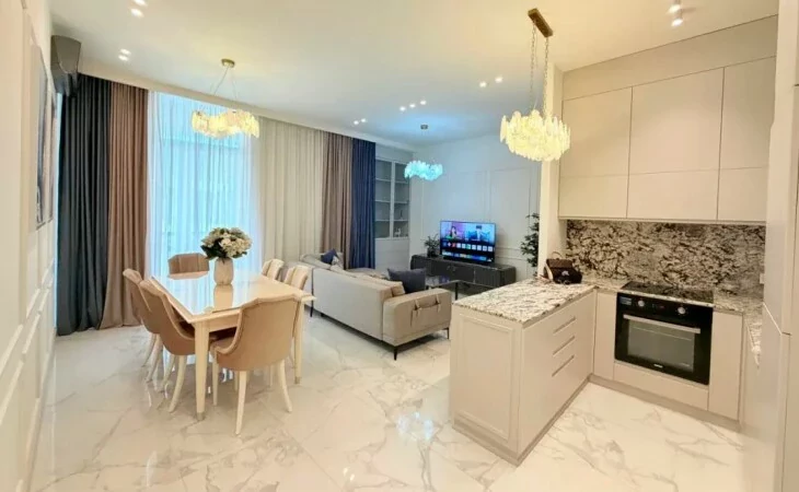 For rent is a modern 4-room apartment in a newly built building on Arami Street in the center, 130 square meters, the apartment has a beautiful open balcony.
