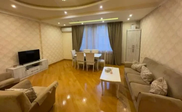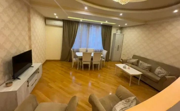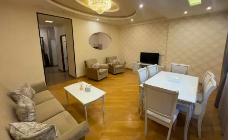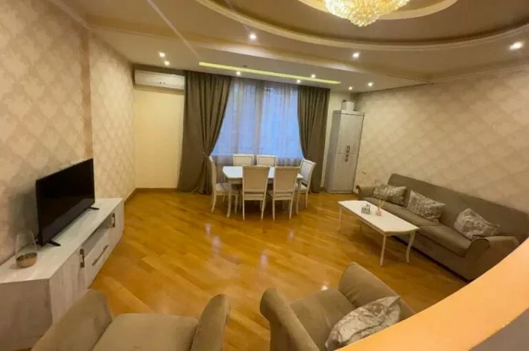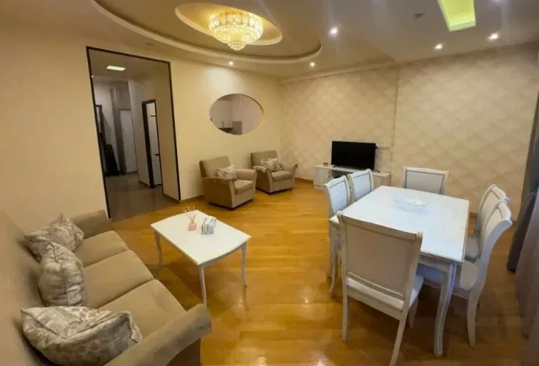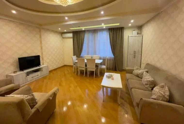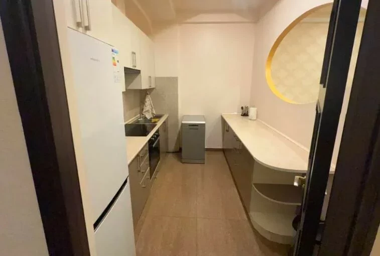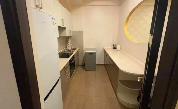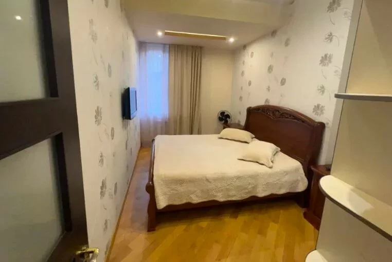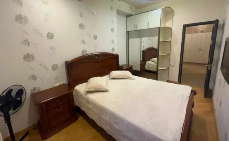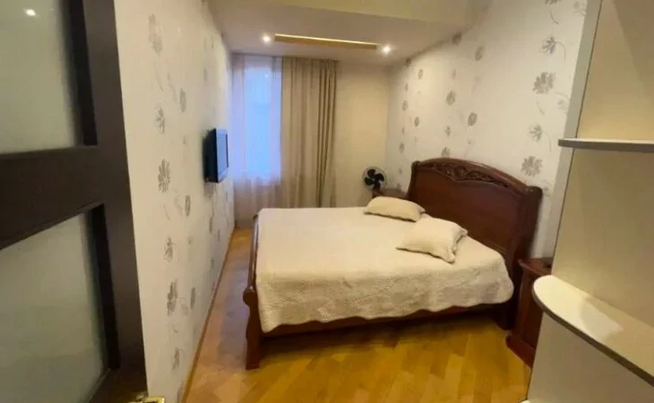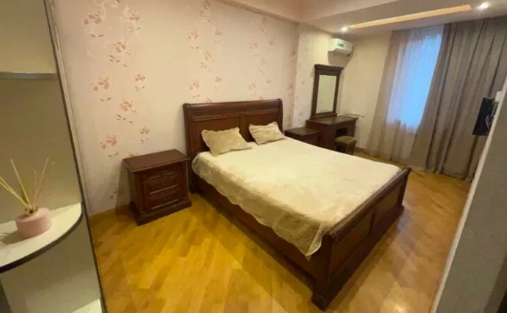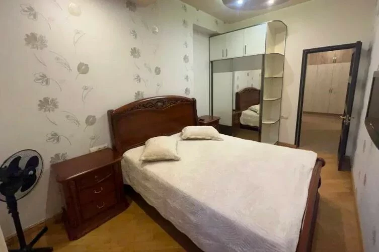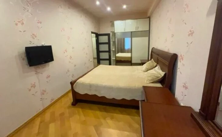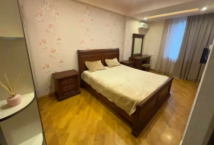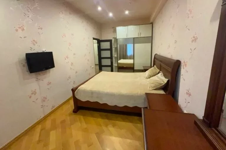 A fully renovated comfortable apartment is for rent in a newly built building at Pushkin 51/1, apt. 9. The apartment has 2 air conditioners: 1 in the living room, the other in the bedroom. It has a wardrobe, 2 bedrooms, a large living room and a separate kitchen.