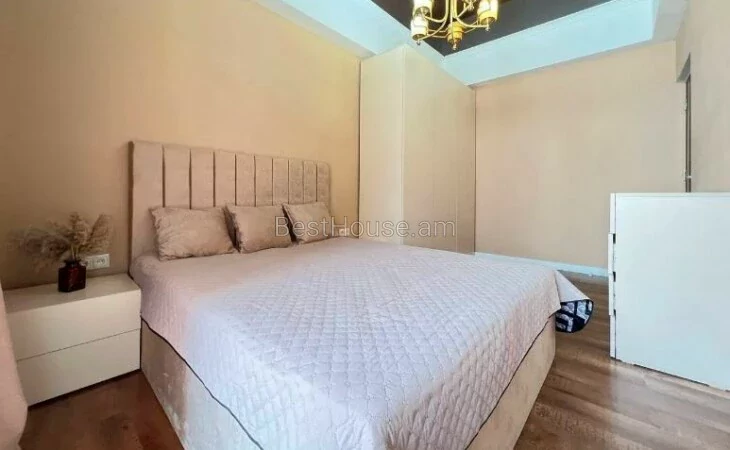 A 4-room apartment with designer solutions is for rent in the 4th district of Davtashe. The apartment is equipped with necessary property and equipment. The balcony offers a beautiful view of the city and Mount Ararat.