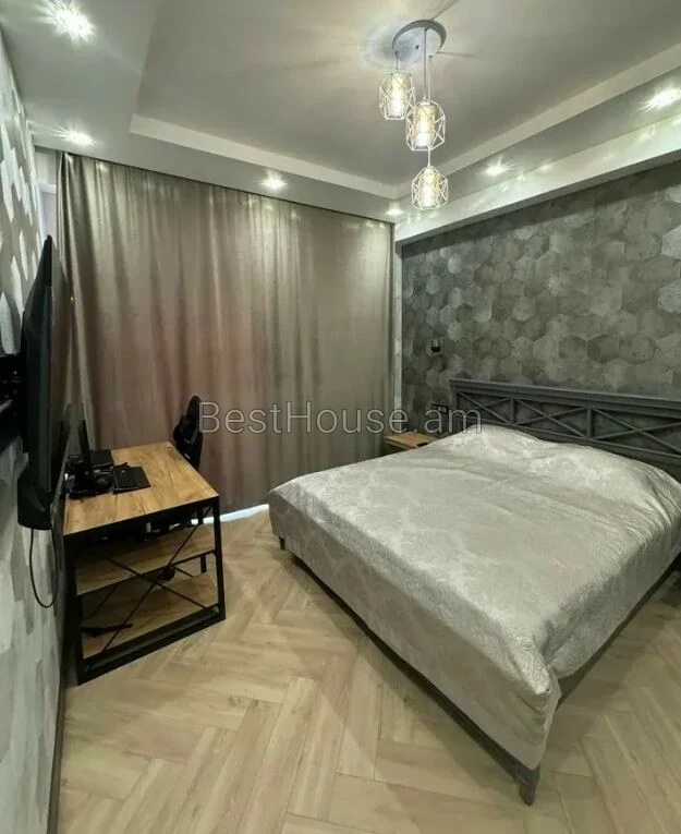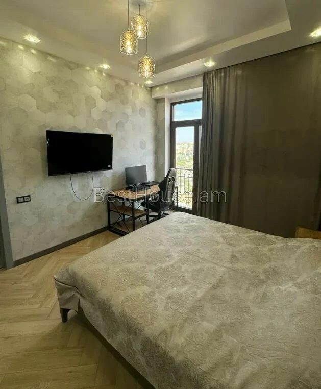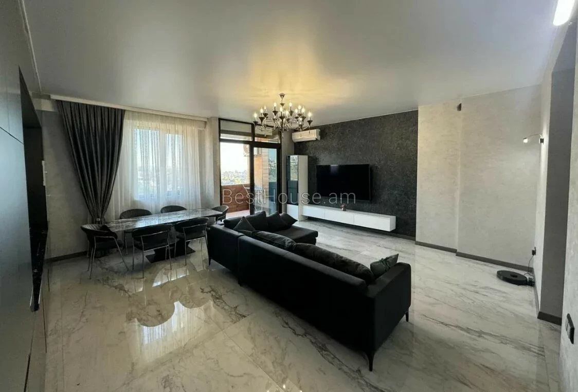 A bright and beautiful 3-room apartment is for rent in a newly built building, on Sasna Tsreri street, the 2-bathroom apartment is equipped with necessary furniture and appliances.