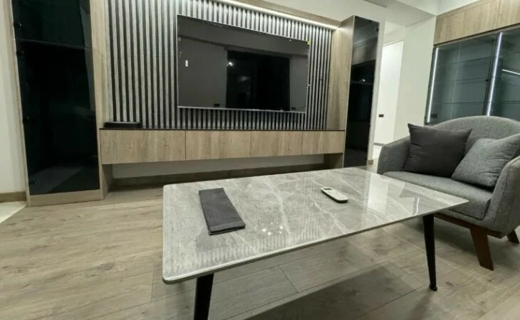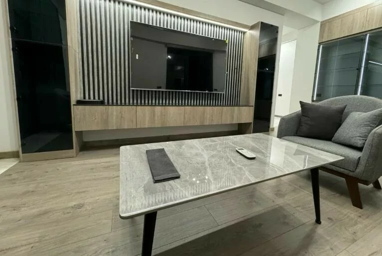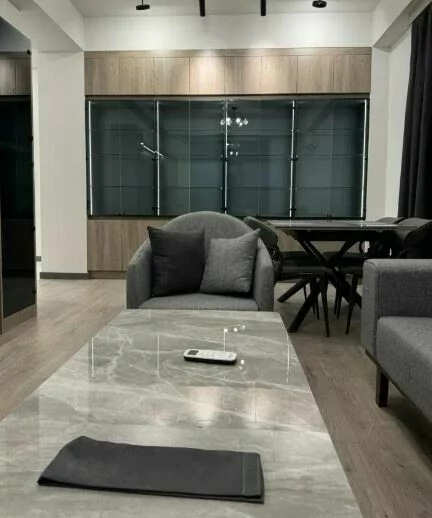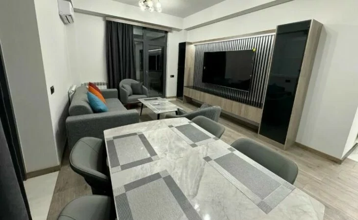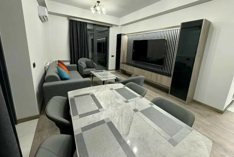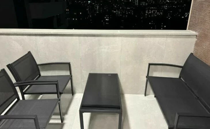 The apartment is equipped with all amenities. 2 bedrooms, 2 open balconies, separate kitchen with balcony, spacious hallway, dining room with balcony