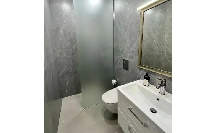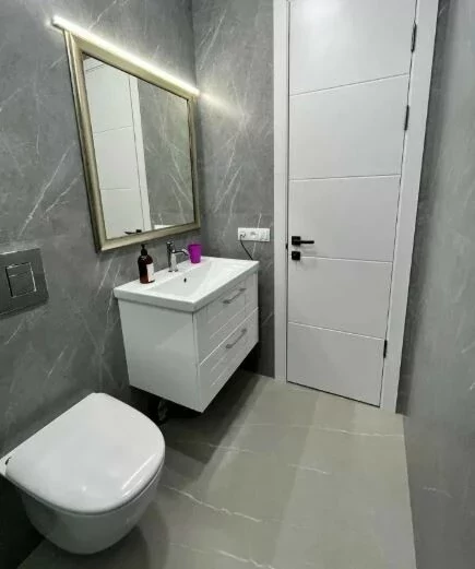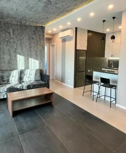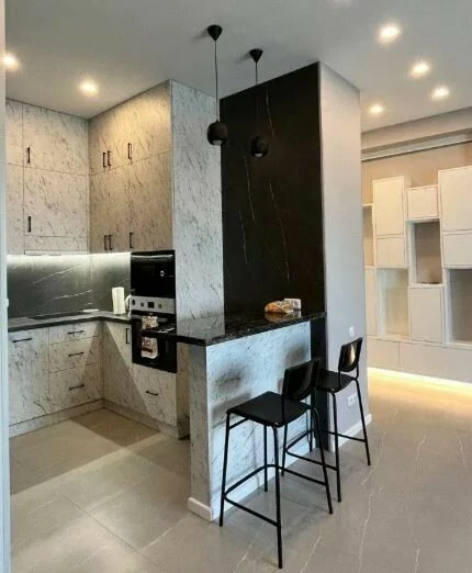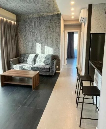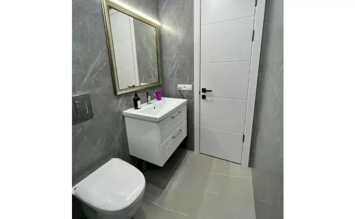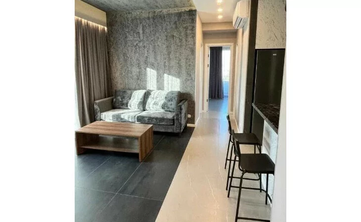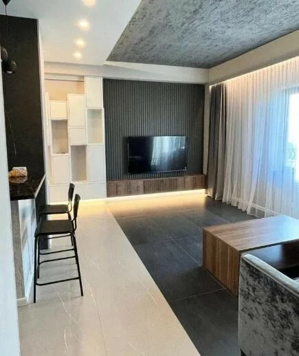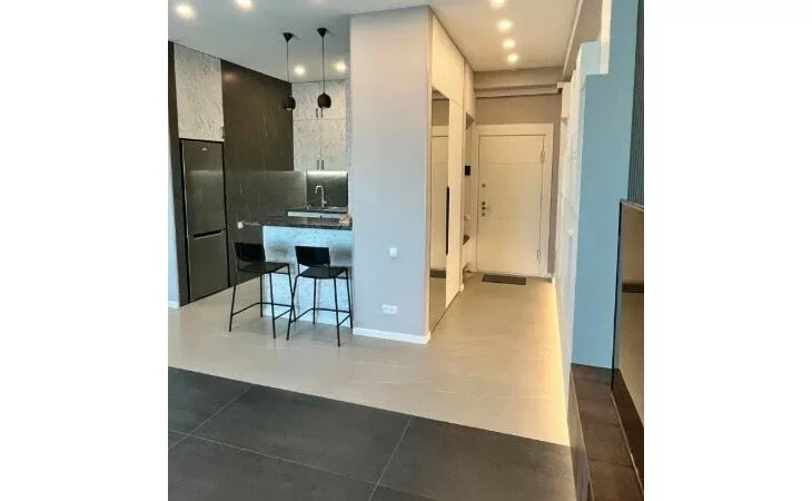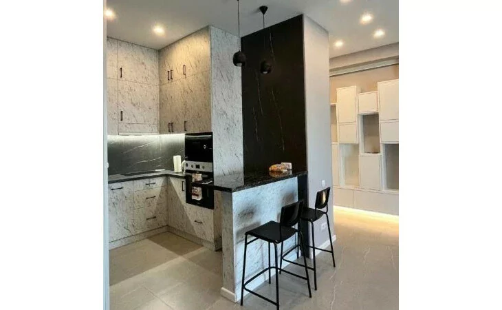 A 3-room apartment for rent on the 14th floor of a newly built building with designer renovation. The apartment has three open balconies. The apartment is furnished with household appliances and property. It has three open balconies.