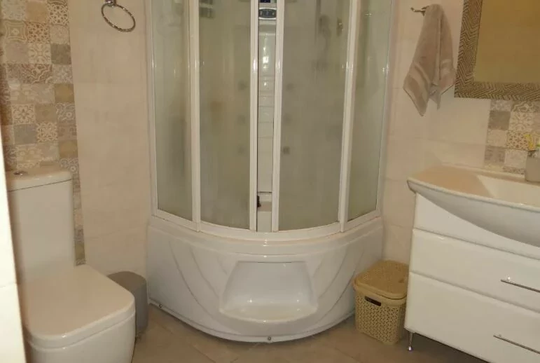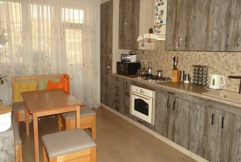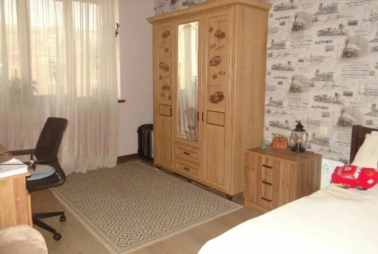Fully furnished 4-room apartment on the 2nd floor of a newly built building. The apartment has a living room, 3 bedrooms, a separate kitchen, 2 storage rooms, 2 open balconies, 1 underground parking space. We can rent another parking space in the neighboring building. All rooms have air conditioners, there is constant cold and hot water, heating. The building is equipped with a security video system, the Insport sports complex operates in the yard, there is a green area, a recreation area, a playground. Nearby there are schools, kindergartens, a supermarket, a hairdresser and other amenities.