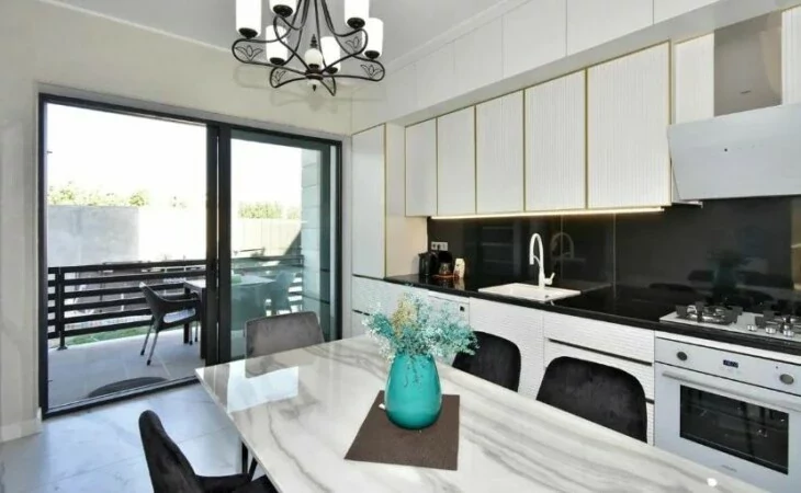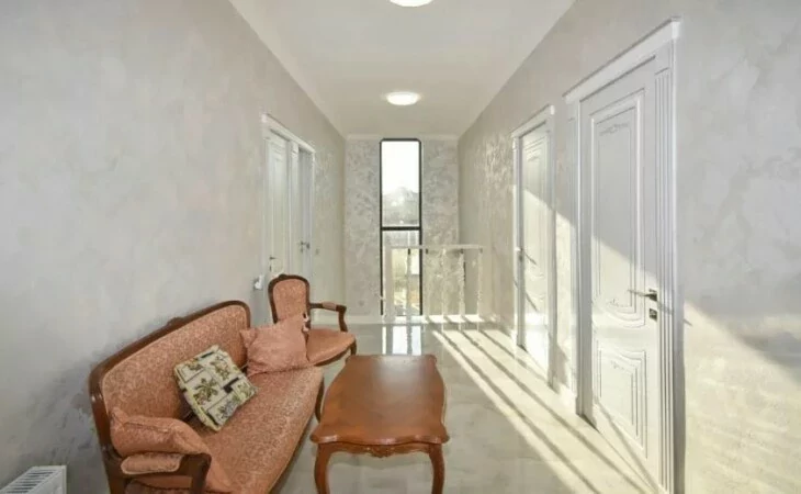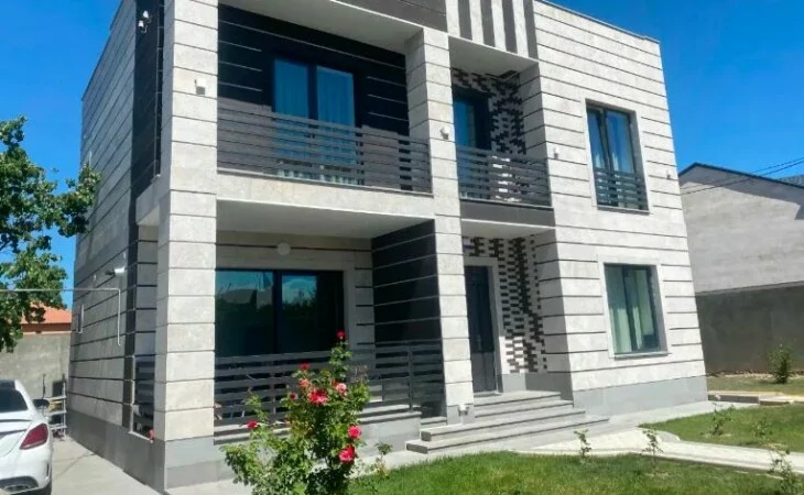A 2-storey newly built, spacious and luxurious house is for long-term rent, the area of which is 190 sq m. and the land area is 450 sq m. It is located in Arinj. It has 3 bedrooms, a large kitchen with a terrace, a spacious and very bright living room, two large bathrooms. It is completely fenced, the yard is well-maintained, has fruit trees. It is equipped with internet and a security system. The interior stairs and window sills are made of natural white marble. The windows are Greek thermoaluminum. The floor of the first floor is fully heated, the house is renovated with designer wallpapers and materials. It is sunny and very bright. It is provided with the necessary furniture, appliances and dishes. There is an outdoor garage for 3 cars. There is a swimming pool in the yard in the summer.