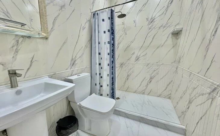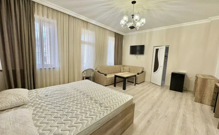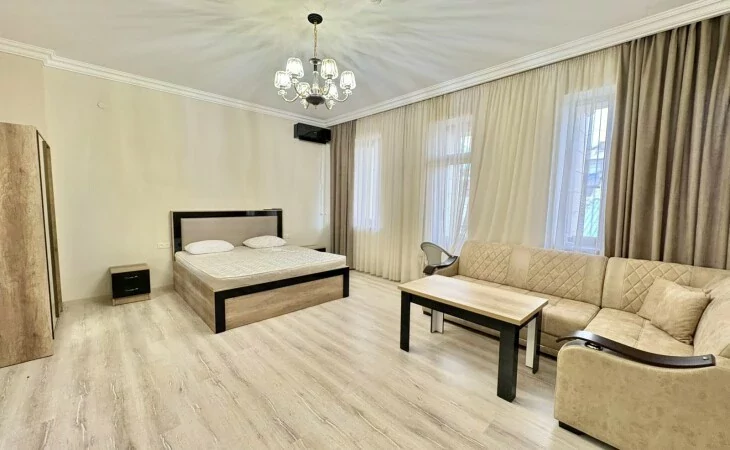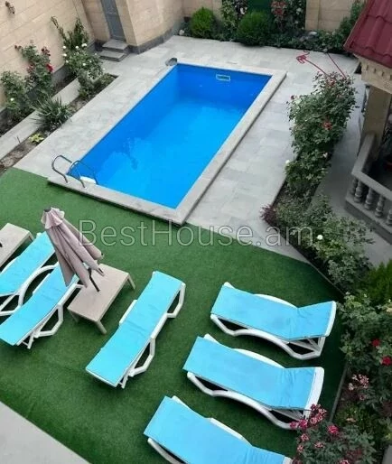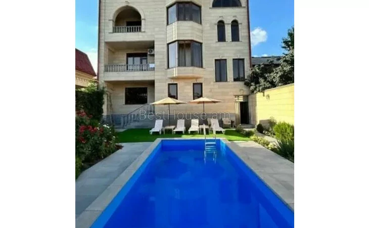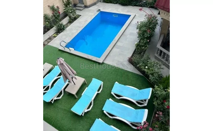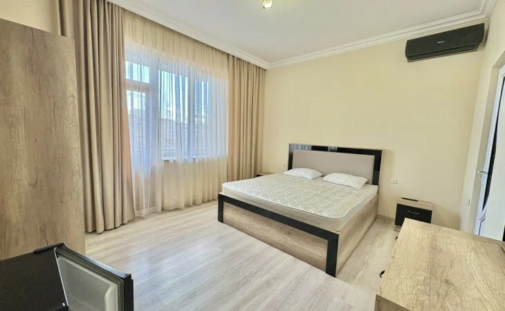 A hotel for rent, which is fully equipped with the best technologies, as well as capital and modern renovation. It has 8 rooms, each room has a bathroom, a bathtub, and is provided with all the amenities to make the rest complete. There is also a yard, a swimming pool and a barbecue.