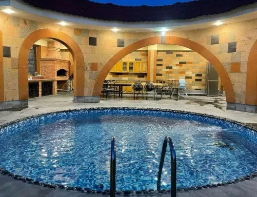 It has an outdoor pavilion, which is designed for about 20 people. Overnight stay for up to 10-12 people