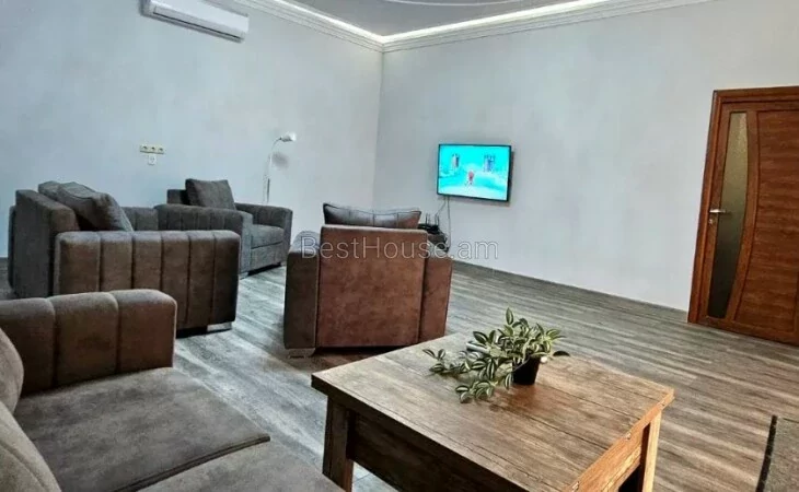 A beautiful 3-room completely renovated private house is for rent on Varshavyan street. The house is equipped with necessary property and equipment. The house is fenced, has a beautiful yard, 3 bathrooms.