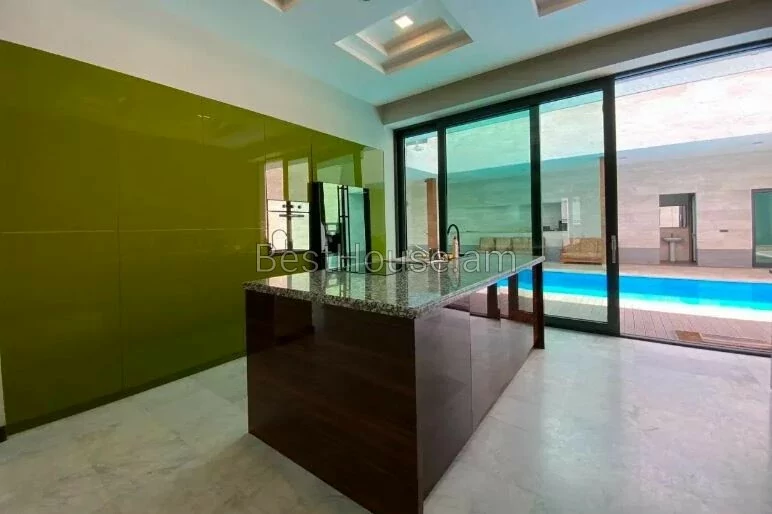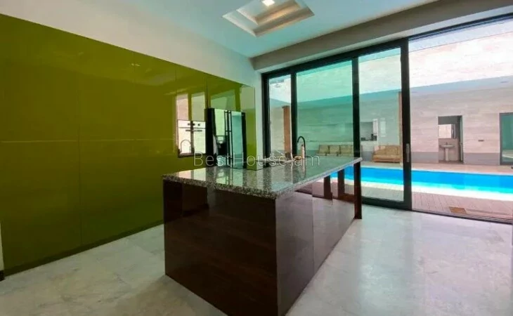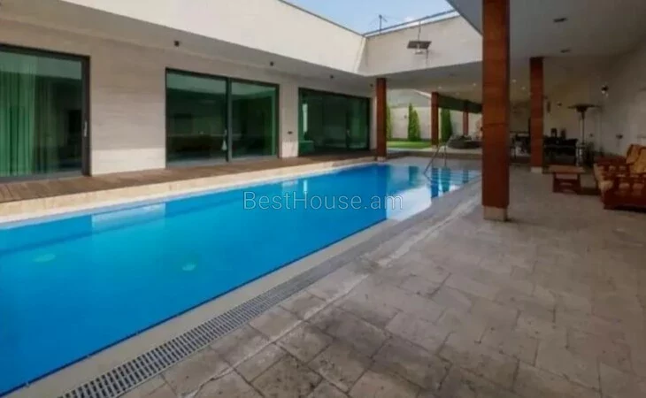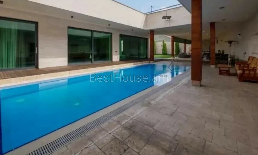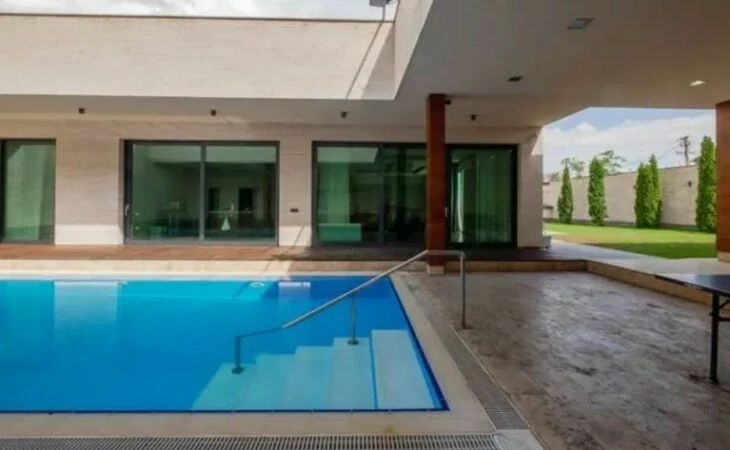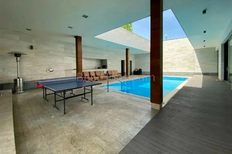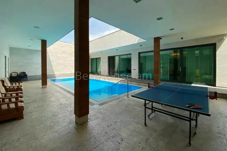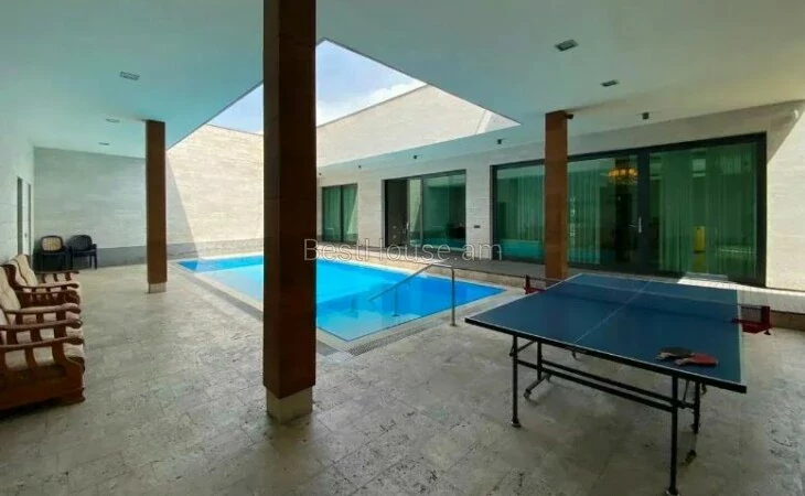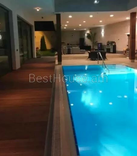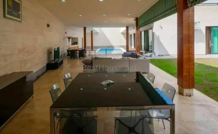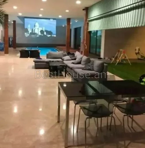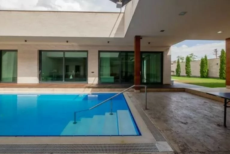 The mansion has a beautiful, closable swimming pool that can be used all year round. The water in the pool is filtered, and thanks to the large screen next to the pool, your entertainment will become even more enjoyable. The house has a garage for 4 cars. A security system is installed.