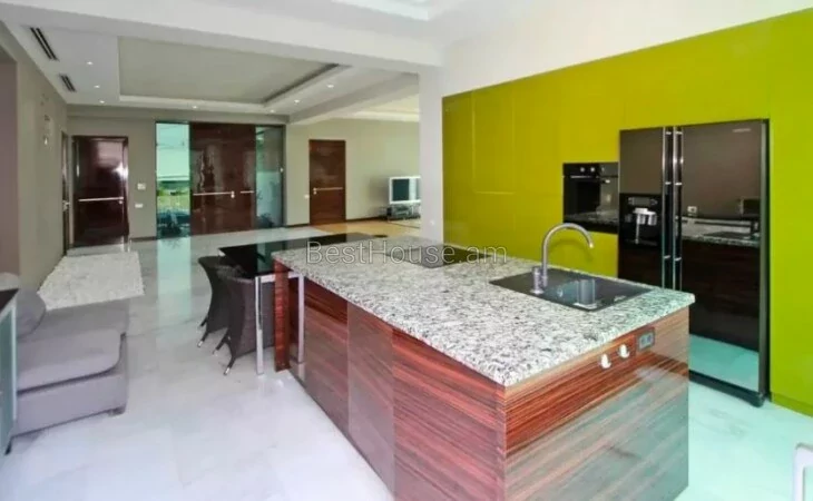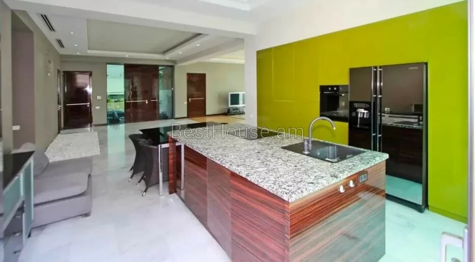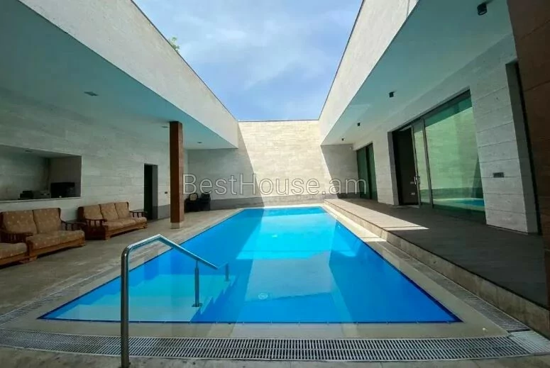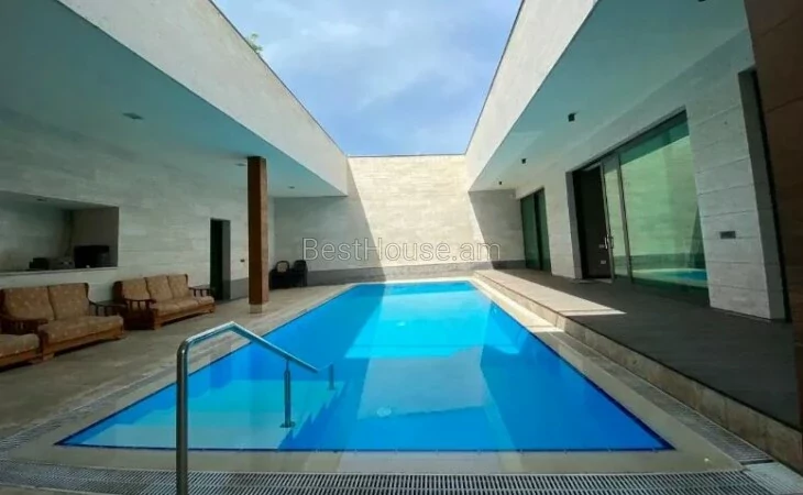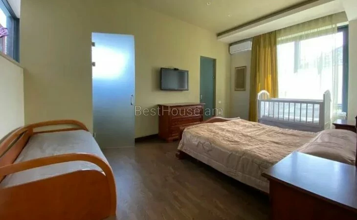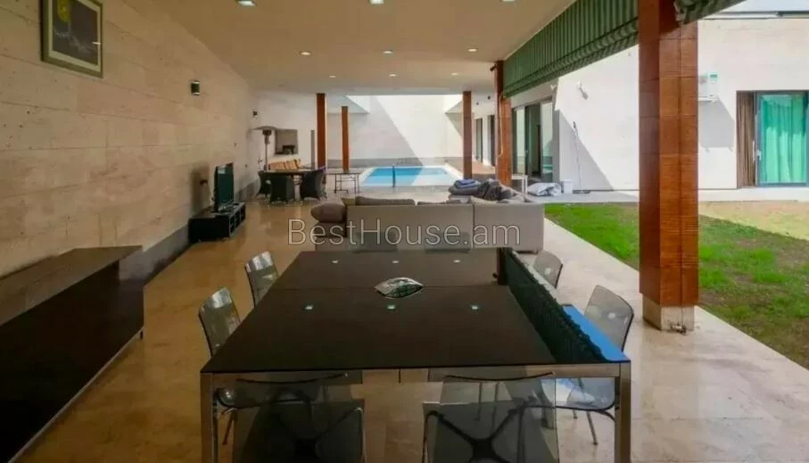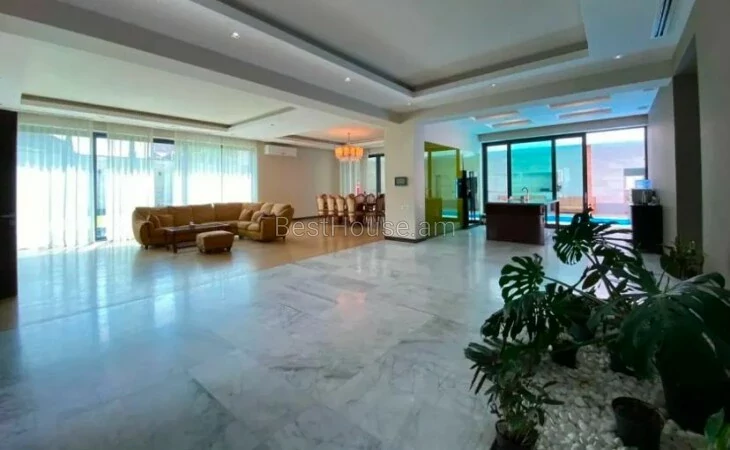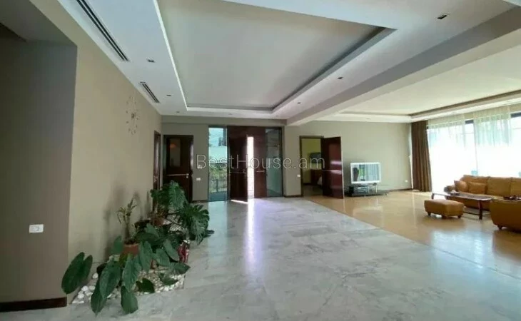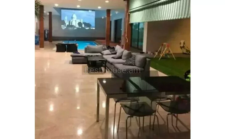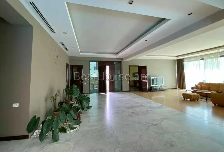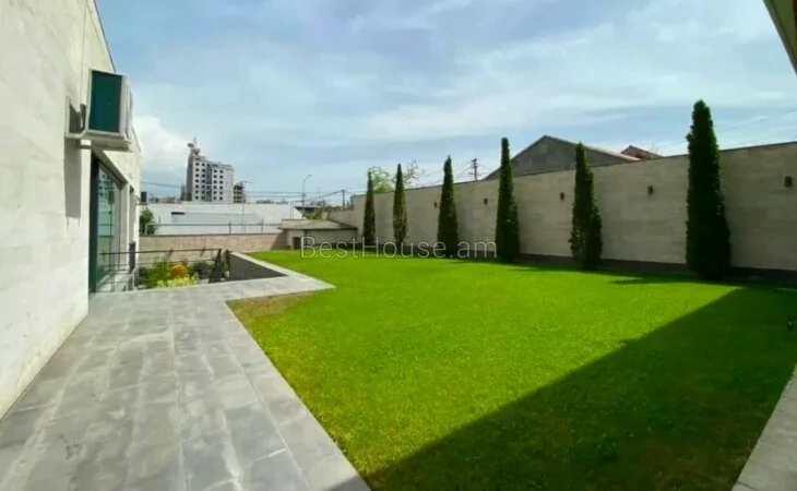 A beautiful detached house built with interesting design solutions is for rent in the Kanaker-Zeytun community, on Botanoch Street. The total area of the land is 900 sq/m, and the area of the building is 750 sq/m.