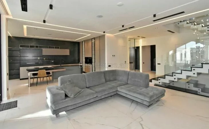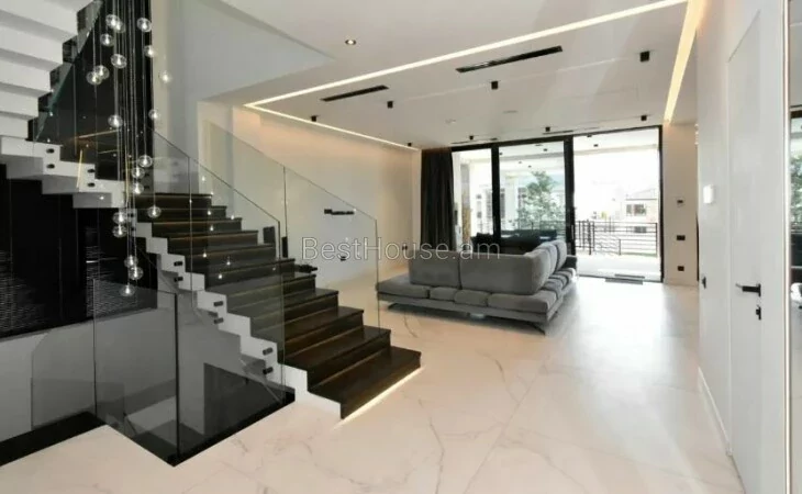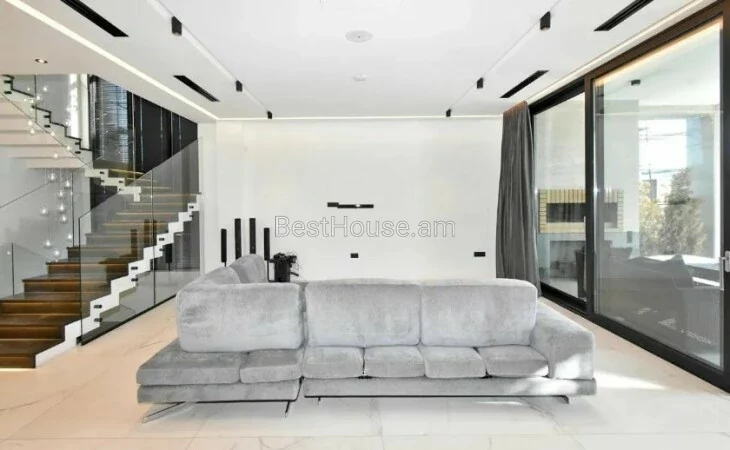In the Vahagni district of Ajapnyak community, a luxurious three-story private house is for sale or rent, built and renovated with designer solutions.