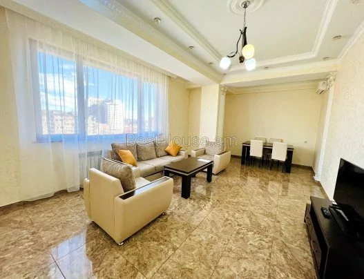 On Arami Street, next to the <<Yasaman>> restaurant and Malibu Park, a 3-room euro-renovated apartment is for rent, with an area of 60 sq.m., located on the 7th floor of a 15-story new building. It is heated by a gas boiler, air conditioning, euro windows are installed. It is fully furnished with stylish and high-quality furniture and household appliances. The floor is covered with laminate and tiles. The bathroom is tiled and equipped with plumbing. The apartment has an open balcony. The building has a smoothly operating elevator, there is a beautiful reception and a security system. It is located in the city center, nearby the metro, Northern Avenue, all kinds of entertainment venues, shops and banks.