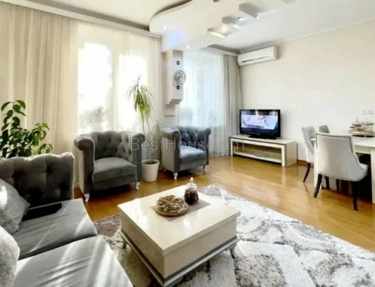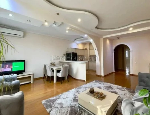 Բնակարանը շատ արեվոտ դիրքում է, ունի բաց պատշգամբ անմիջապես փողոց նայող, շենքի տակ գործում են Երեվան սիթի, ակբա բանկ, ալֆա ֆարմ դեղատուն, մարզասրահ, զարգացման կենտրոն եվ այլն: Բնակարանը կապիտալ վերանորոգված է եվ կահավորված դիզայներական ոճով եվ շատ բարձրակարգ նյութերով:
