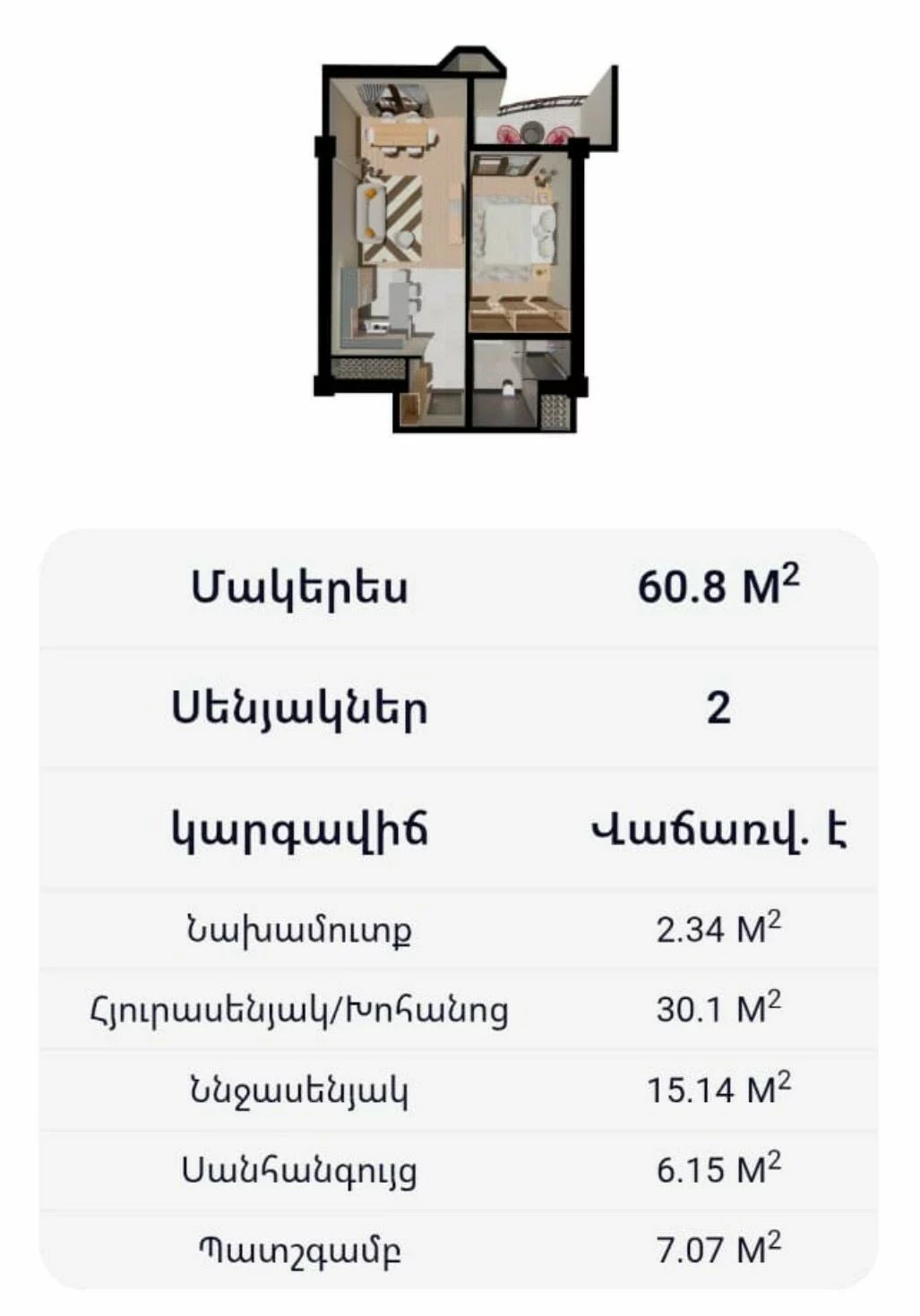 2 Սենյականոց բնակարան, Նազարբեկյան թաղ, Աջափնյակ (Երևան)