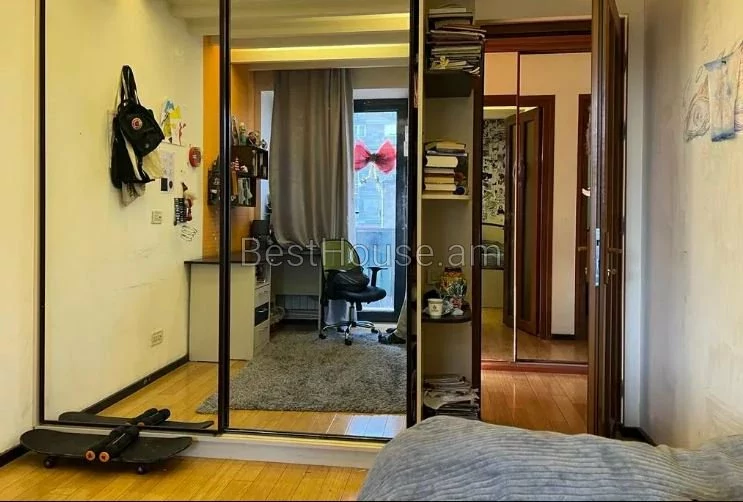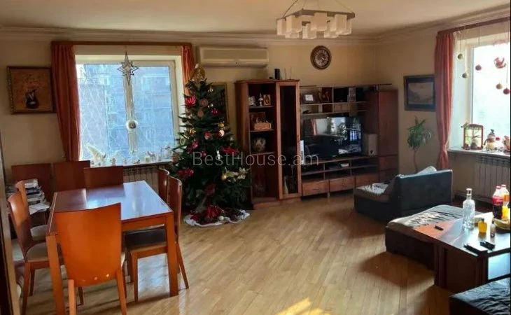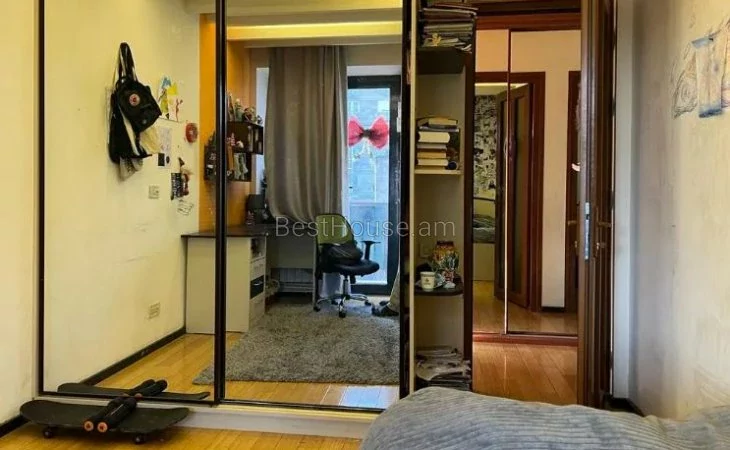 2 բնակարան միացված։ 4 սենյակ։ Լուսավոր, արևկողմ։ 2 սանհանգույց, բաքսի համակարգ, նաև էլեկտրական բաքսի ջրի բաք, վիդեոֆոն, ներկառուցված պահարաններ;