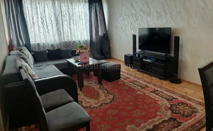 Վաճառվում է բնակարան 5 հարկանի քարե շենքի 3֊րդ հարկում։Բնակարանը ունի 3 սենյակ` Հյուրասենյակ և երկու ննջասենյակ (ննջասենյակներից մեկը դարձրած է + երկու սենյակ) ։Շատ արևկող և տաք տուն է։Երկու կողմերից ունի գեղեցիկ այգի նստարաններով և խաղահրապարակով։Կա հնարավորություն օրինական առաջ գնալու մոտ 30 ք. Մ։Բնակարանի հետ վաճառվում է ավտոտնակ և նկուղ։