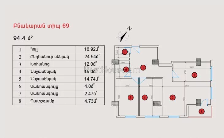 3 Սենյականոց բնակարան, Ադոնց փող, Արաբկիր (Երևան)