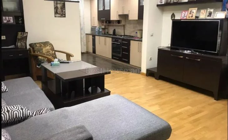 3 սենյականոց բնակարան 14 հարկանի նորակառույց շենքի 13-րդ հարկում: * Բնակարանը կապիտալ վերանորոգված է: * Առկա է 2 սանհանգույց: * Ջեռուցվում է անհատական ջեռուցման համակարգով, արևկող է: * Բնակարանը կահավորված է բարձրորակ կահույքով և տեխնիկայով, առկա է բնական գազ, գազօջախ, սառնարան, լվացքի մեքենա, սպասք լվացող մեքենա, հեռուստացույց: