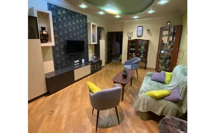 Վաճառվում է 4 սենյականոց բնակարան կապիտալ վերանորոգված, մշտական տաք և սառը ջուր, ջեռուցում, 2 մուտքով ։ Բնակարանը վաճառվում է կահույքով և տեխնիկայով, ունի վերանորոգված նկուղ 24քմ։ Անհատական կայանատեղի դարպասներով առանձին մուտք։ Բակը 100քմ։ Մոտակայքում առկա է անհրաժեշտ բլոր կառույցնները;