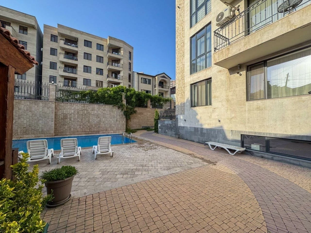 Էլիտար նորակառույց շենք որն ունի 24/7 անվտագության աշխատակից, սպասարկման ծառայություն, աղբահանության ծառայություն, սեփական լողավազան և տաղավար: