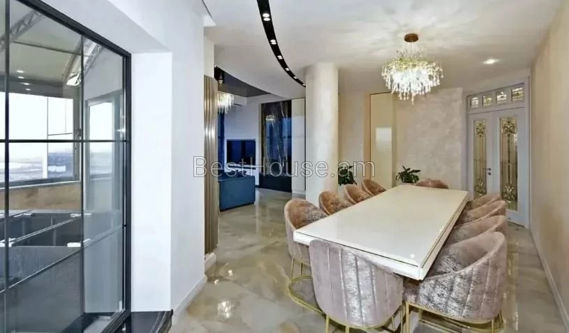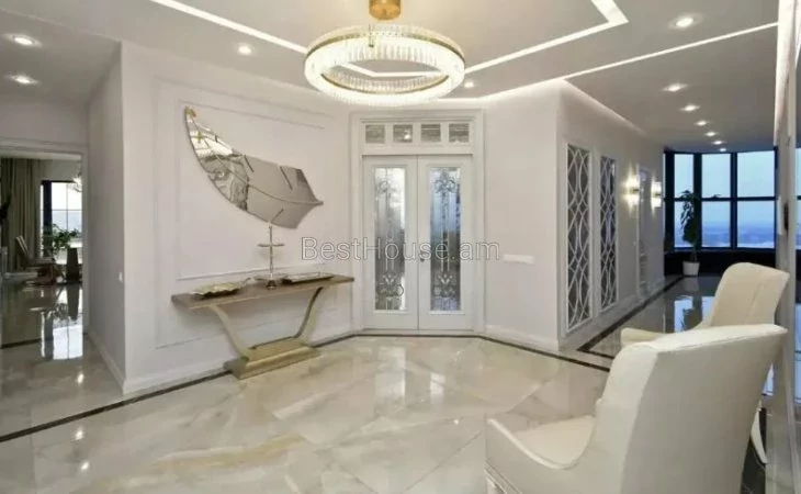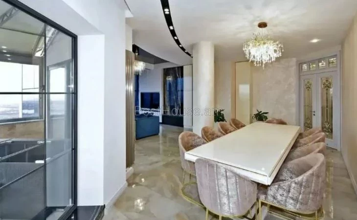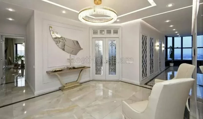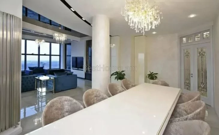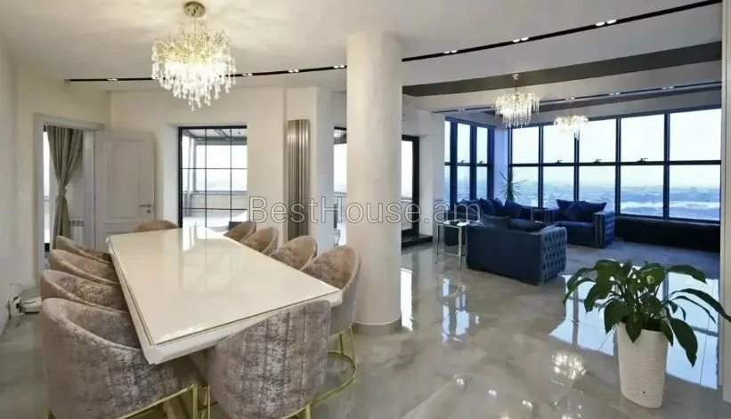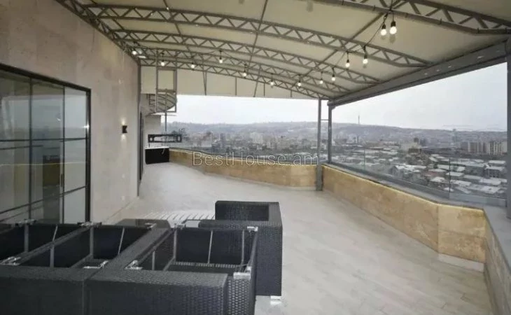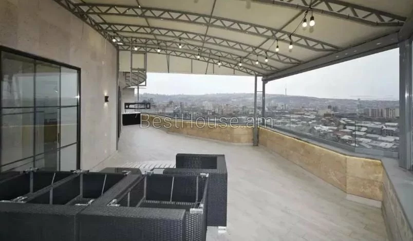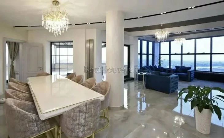 Վաճառվում է 5 սենյականոց լյուքս դասի, շքեղ և յուրահատուկ դիզայներական լուծումներով պենտհաուս, որի ընդհանուր մակերեսը կազմում է 275 քմ.: Այն գտնվում է 13 հարկանի բնակելի նորակառույց շենքի 13-րդ հարկում: Պենտհաուսը բոլոր կողմերից ունի պանորամային պատուհաններ ինչն ապահովվում է տարածքի գեղեցիկ լուսավորությունը: Այն նորոգված է բարձրորակ նյութերով,ապահովված է բոլոր կոմունալ հարմարություններով: Ջեռուցվում է գազի կաթսայի միջոցով,տեղադրված է օդորակիչներ: Բոլոր սենյակները և խոհանոցը կահավորված են բարձրորակ կահույքով, համալրված են վերջին սերնդի տեխնիկայով և թանկարժեք սանտեխնիկայով: Հատակը ծածկված է տաքացվող պրեսգրանիտով: Առկա է 3 սանհանգույց,2 բաց պատշգամբ նաև ընդարձակ տեռասա` 30 քմ մակերեսով, որտեղից բացվում է հիանալի տեսարան: Տեռասայում առկա է ջակուզի և հանգստի համար բոլոր հարմարությունները: Շենքում գործում է 3 վերելակ, ապահովված է անվտագության համակարգով, ունի ստորգետնյա ավտոկայանատեղի` 2 մեքենայի համար նախատեսված:Վաճառվում է ամբողջ գույքի և տեխնիկայի հետ միասին։