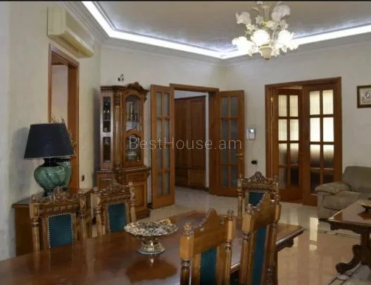 150 քմ մակերեսով եվրովերանորոգված բնակարան Աբովյան-Իսահակյան խաչմերուկում գտնվող 5 հարկանի քարե շենքի 2րդ հարկում, 3 ննջասենյակ, 1 ճաշասենյակ բաղկացած երկու սենյակներից,բաց պատշգամբ;