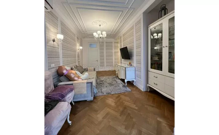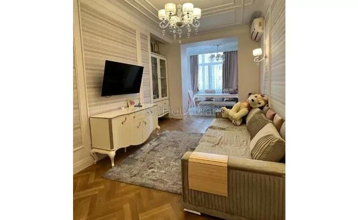 3 սենյականոց կապիտալ վերանորոգված, արրևկող բնակարան Աբովյան փ. Վրա, բժշկական համալսարանի հարևանությամբ: Բնակարանը կահավորմած է և ունի ամեն ինչ հարմարավետ բնակվելու համար: Առաստաղի բարձրությունը 3,1մ: Գլխավոր ննջասենյակում` Փայտե մանրահատակ է (պարկետ), կա ֆրանսիական պատշգամբ, զգեստապահարան, իտալական մահճակալ 180*200սմ, կից պահարաններ։ 2րդ ննջասեյակում` 2 պատուհան, զգեստապահարան, 2 հարկանի մահճակալ, աշխատասեղան, փայտե մանրահատակ։ Հյուրասենյակում` Փայտե մանրահատակ, TV, բազմոց, պահարան, և MDV հզոր օդորակիչ (ձմռանը մինչ -15) : Ճաշասենյակ և Խոհանոց` Տեղատրված է էլեկտրական տաք հատակ, սալիկապատ է (Roberto Cavalli), կա նիշա հետուստացույցի համար, խոհանոցի սեղանածածկը քարից է, տեղադրված է измельчитель пищевых отходов, կա անհրաժեշտ տեխնիկա: 1 սանհանգույց` Տեղադրված է էլեկտրական տաք հատակ, սալիկապատ (Roberto Cavalli, Marazzi), վաննա 180 երկարությամբ, հայելու հետևում կա խորը նիշա: 2 սանհանգույց` Կա պահարան, լվացքի մեքենա, սալիկապատ է (Roberto Cavalli, Marazzi) : Միջանցք` Սալիկապատ է (Roberto Cavalli), կա մեծ պահարան 2,6 մետր երկարությամբ, 65սմ խորությամբ: Շատ հարմար է ճամփրուկներ, տեխնիկա ամեն ինչ տեղավորվում է: