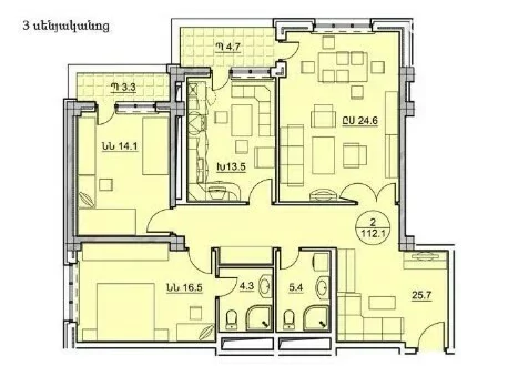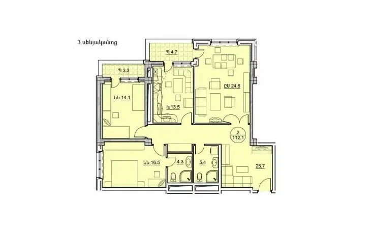 3 Սենյականոց բնակարան, Սևակի փող, Քանաքեռ-Զեյթուն (Երևան)