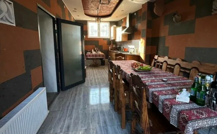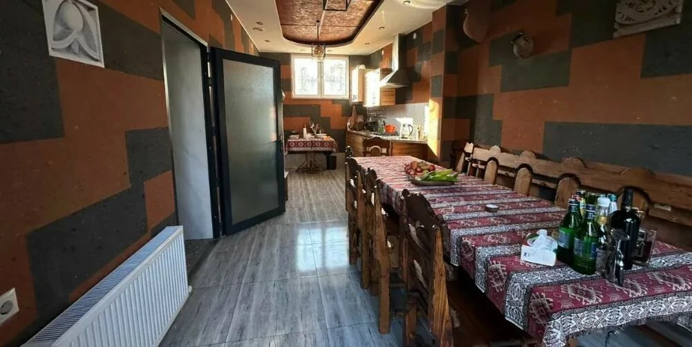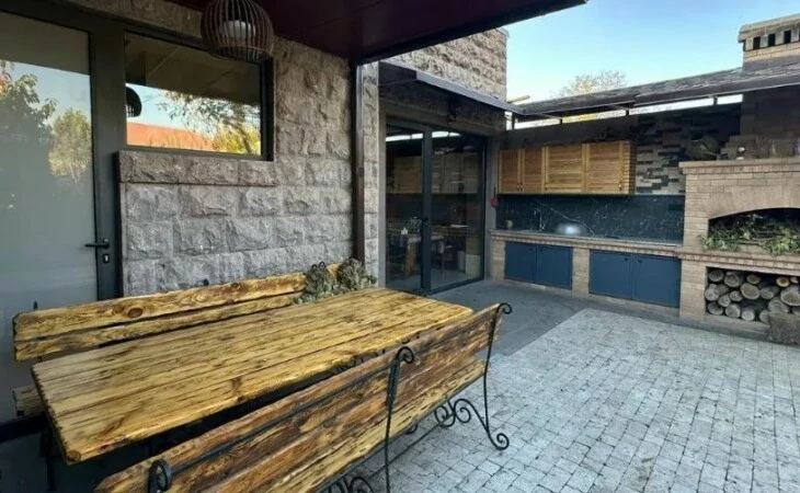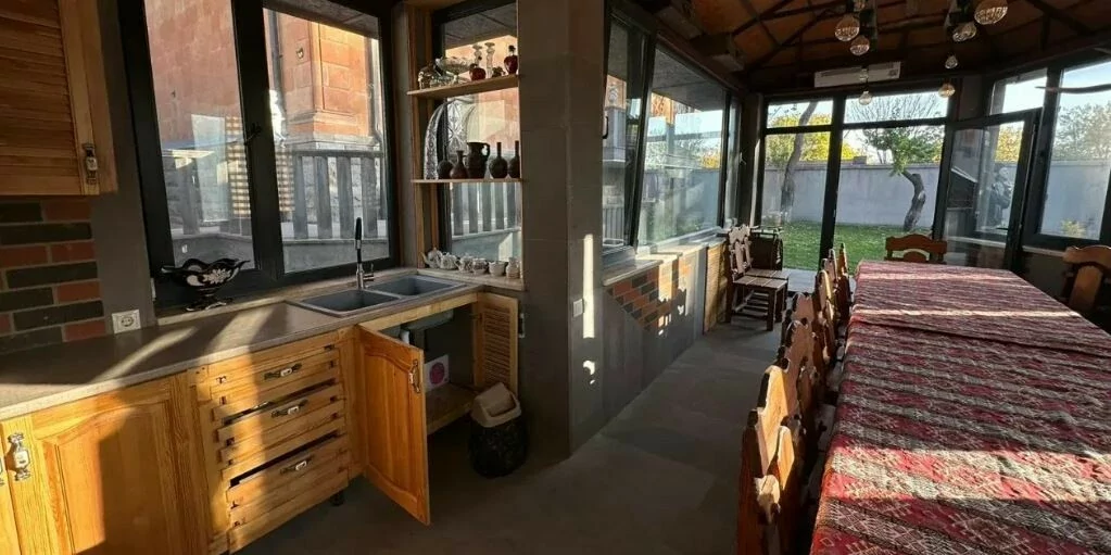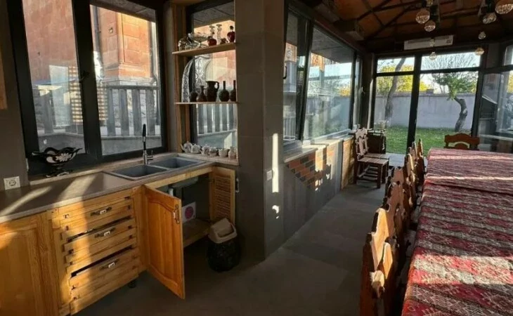 Շենքը կառուցված է երկշերտ տուֆ քարով բնակելի մակերեսը 500քմ
