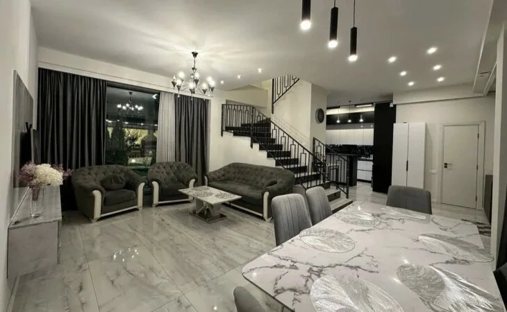 Ունի 130քմ բնակելի և 250քմ հողատարածք։ 3 ննջասենյակ, 4 սանհանգույց, ստուդիո հյուրասենյակ, մանղալ, 2 պահոց, դրսի տաղավար, պանորամային պատուհաններ, slide դռներ։ Ունի գեղեցիկ այգի, դեկորատիվ ծառերով և ծաղիկներով։ Կապիտալ, դիզայներական ոճով վերանորոգված, ամբողջությամբ կահավորված գույքով և տեխնիկայով։ Ունի առանձին ջրագիծ և կոյուղի։