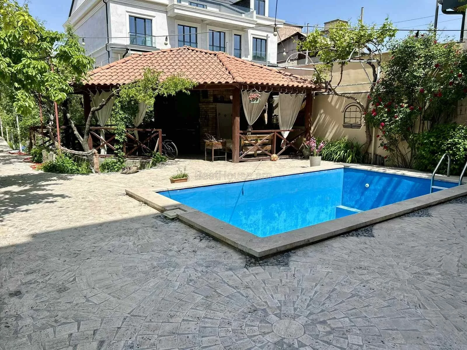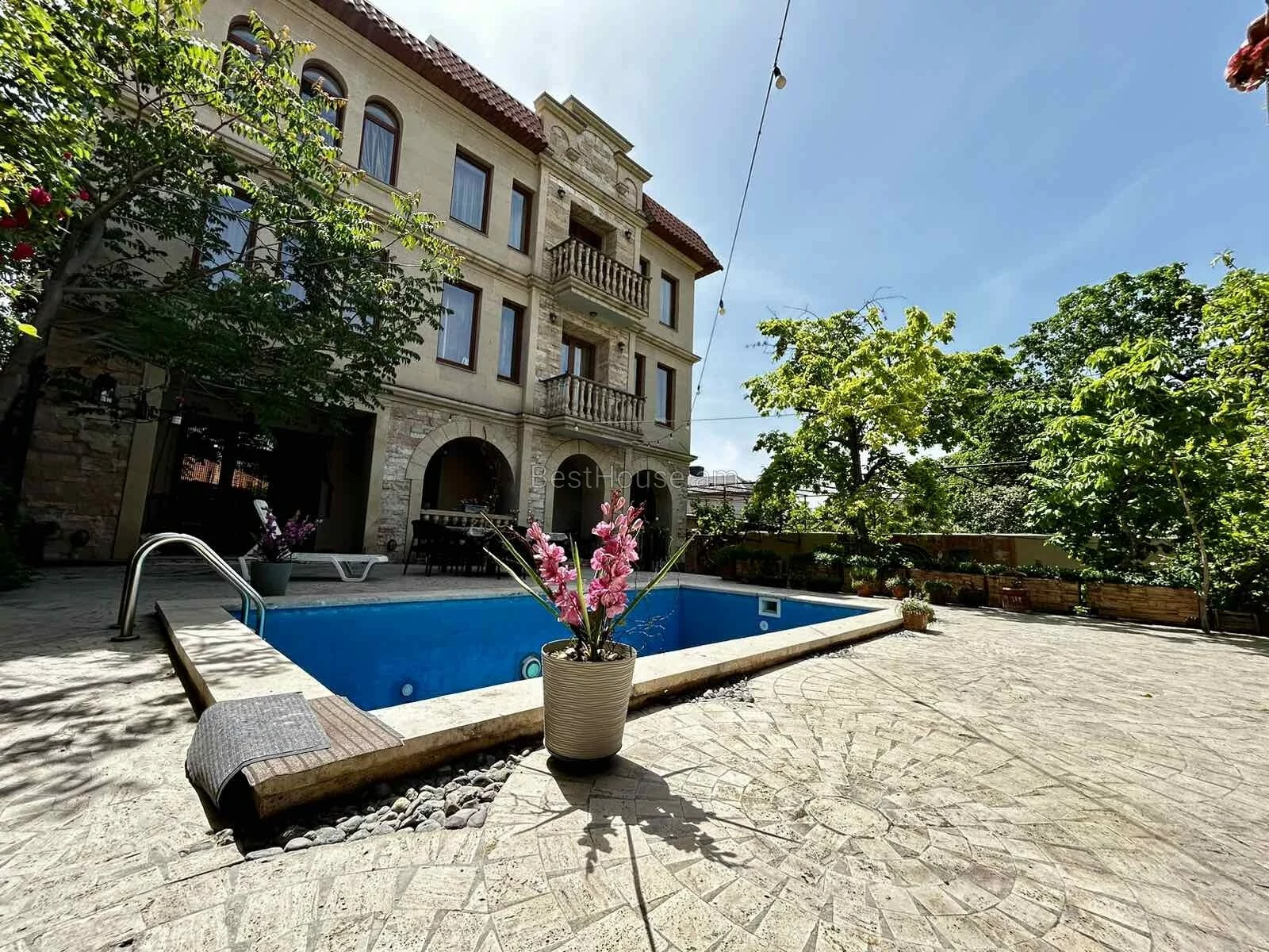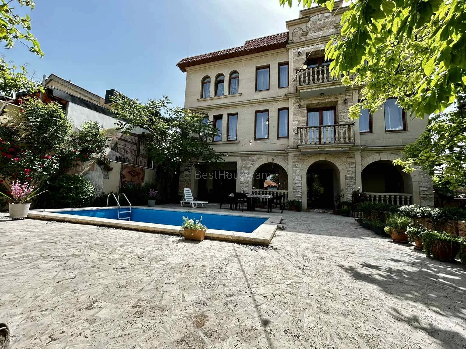 • Բակում առկա է բացօթյա լողավազան, ամառային զրուցարան բուխարիով և բոլոր հարմարություններով, կան պտղատու ծառեր, բացօթյա ավտոկայանատեղի: