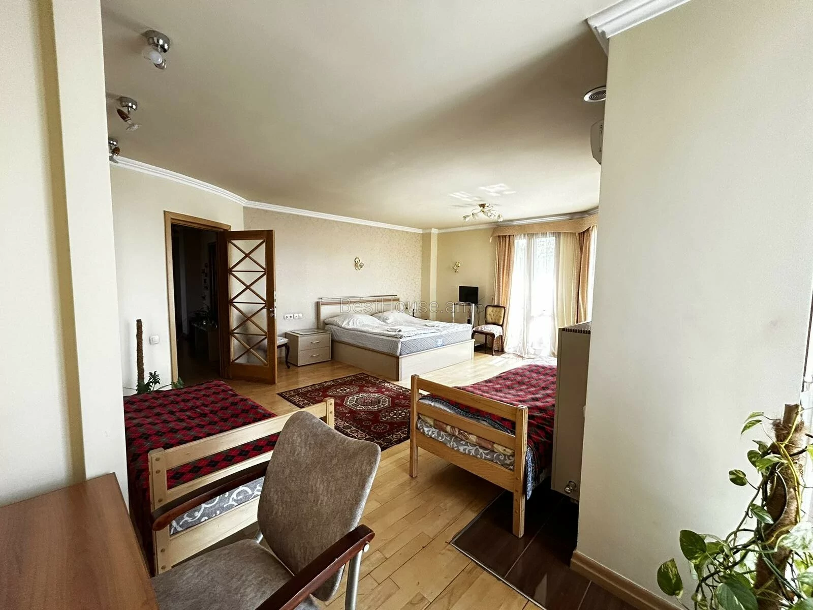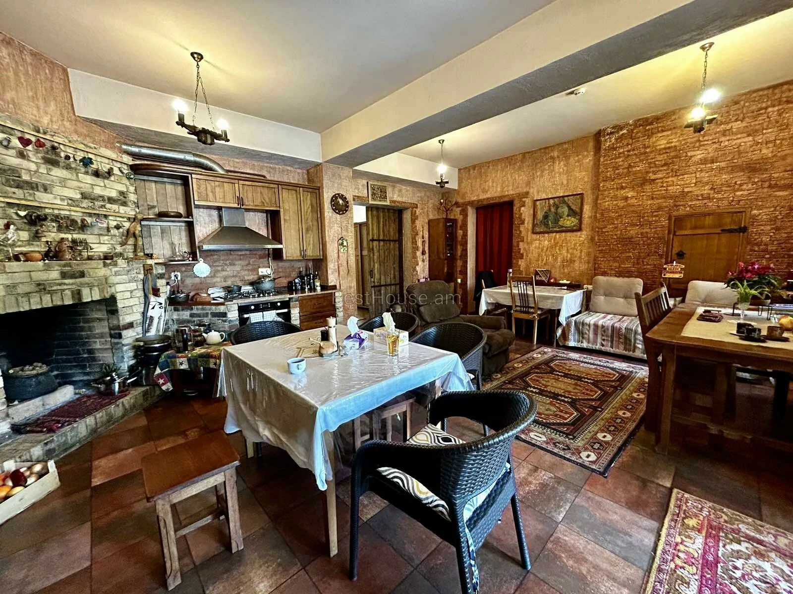 • Հատակները ծածկված են բարձրորակ կաղնե մանրահատակով և սալիկներով: