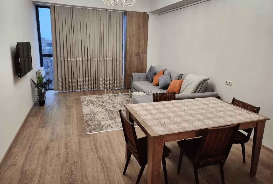 Տրվում է ամսավարձով 2 սենյականոց բնակարան նորակառույց շենքի 9 րդ հարկում 61,4 քմ ընդհանուր մակերեսով։ Բնակարանն ունի 1 ննջասենյակ , 1 սանհանգույց, խոհանոց, հյուրասենյակ 22քմ, ավտոկայանատեղի 20քմ: