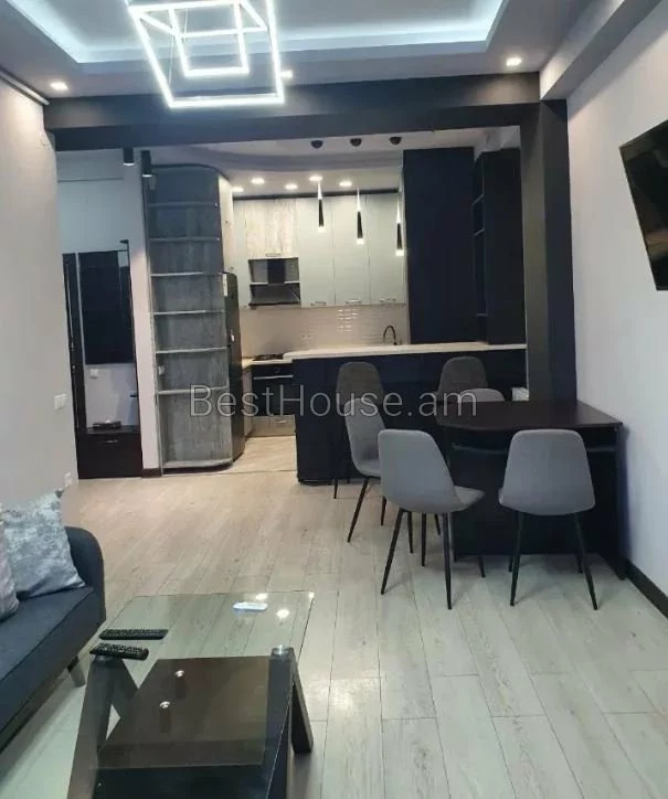 Վարձով է տրվում 2 սենյականոց բնակարան` 1 ննջասենյակ, 1 հյուրասենյակ, 1 խոհանոց (ստուդիո տարբերակով) (51 քմ) : Շենքը նորակառույց է, շենքի կառուցումը ավարտվել է 2020 թվականին։