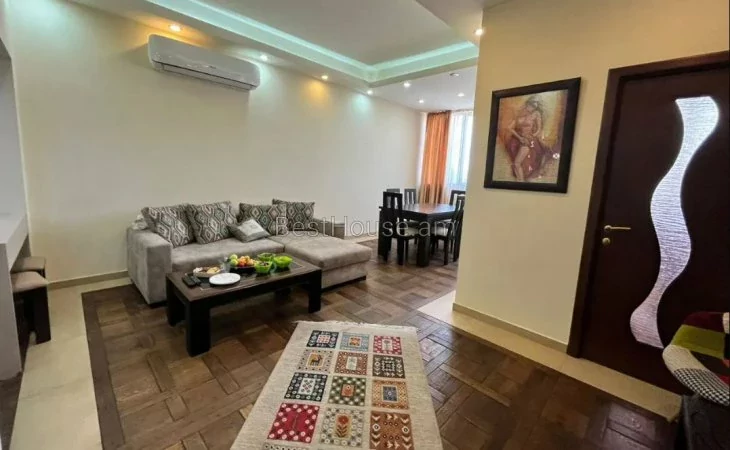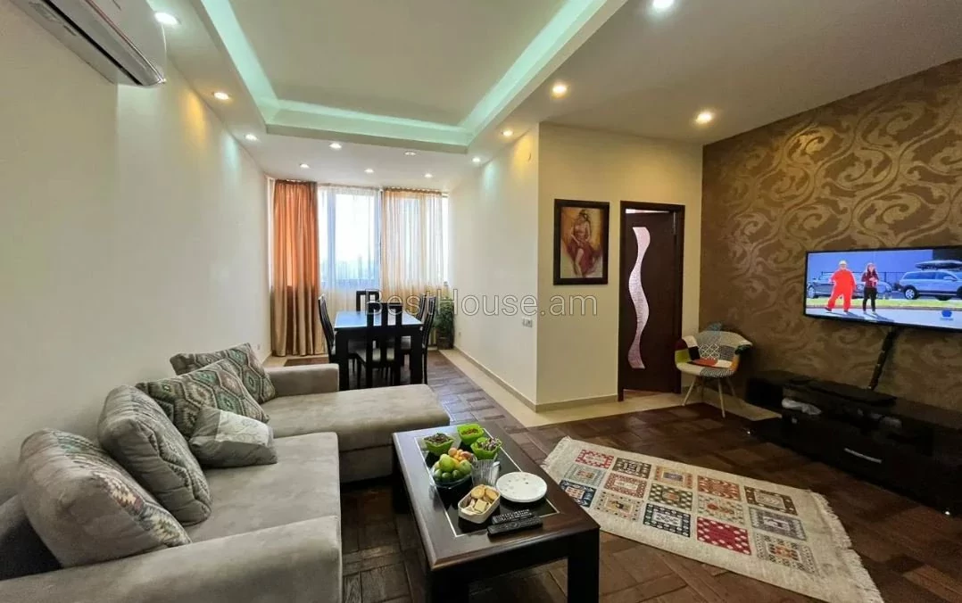 2 սենյականոց բնակարան հանգիստ թաղամասում նորակառույց շենքում, հիանալի տեսարանով, ապահովված բոլոր անհրաժեշտ տեխնիկայով։ Բնակարանը ունի 1 ննջարան, պահեստ և ընդարձակ բաց խոհանոց։