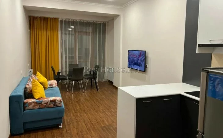 Տրվում է վարձով հարմարավետ 2 սենյականոց բնակարան նորակառույց շենքում Նիկողայոս Ադոնցի փողոցում, 46 ք.մ. բնակարանը ունի նաև բաց պատշգամբ։