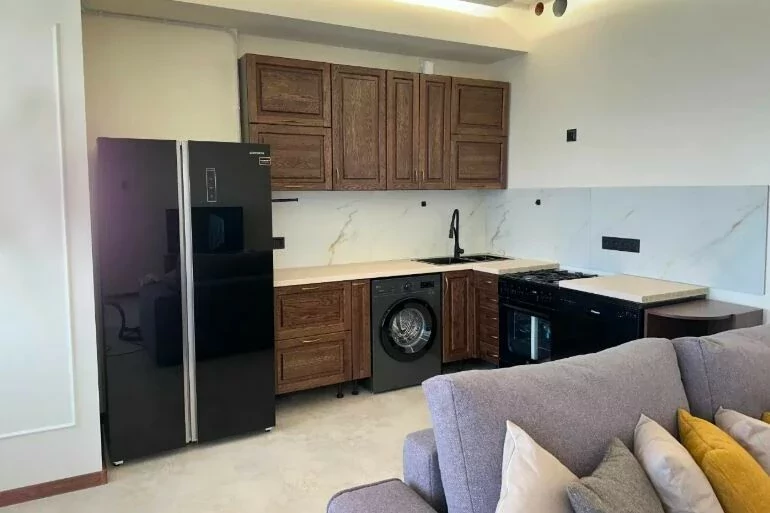 Ամբողջությամբ կահավորված է, ապահովված ժամանակակից կենցաղային տեխնիկայով և անհրաժեշտ բոլոր հարմարություններով։ Դռները, հյուրասենյակի և խոհանոցի ողջ կահույքը կաղնու փայտ է: Վերանորոգումն իրականացվել է բացառապես բարձրորակ նյութերով՝ ստեղծելով հարմարավետ, ճաշակով և մինիմալիստիկ միջավայր