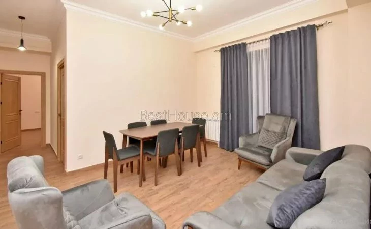 Նորակառույց շենքում վարձով է տրվում 3 սենյականոց բնակարան։ Բնակարանը հանձնվում է ամբողջ գույքով և տեխնիկայով։ Առկա է բաց պատշգամբ։ Ունի բոլոր կոմունալ հարմարությունները։