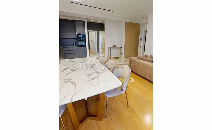 Մայրաքաղաք Երևանի՝ Դավթաշեն վարչական շրջանի, Սասնա Ծռեր հասցեում գտնվող նորակառույց շենքում վարձակալությամբ է տրվում՝ 93 (քմ․) մակերեսով, ընդհանուր՝ երեք սենյակ, առաստաղի՝ 3 (մ․) բարձրությամբ և նորոգման գերազանց աստիճանում գտնվող բնակարան: Շենքում գործում է կենտրոնացված ջեռուցման և հովացման համակարգ: Բնակարանում առկա է օդորակիչ Հյուրասրահն ու խոհանոցը համատեղված են, որտեղից կա մուտք դեպի բաց պատշգամբ, որից տարվա բոլոր եղանակներին բացվում է տպավորիչ տեսարան դեպի Դավթաշենի կամուրջն ու հարակից կանաչապատ տարածքները: Երեկոյան տեսարանը առավել քան գեղեցիկ է: Ննջասենյակը մեկն է, սանհանգույցը նույնպես: Համալիրն իր տարածքով եզակի է տեղադրությամբ, ինչը նշանակում է, որ չկան շինություններ, որոնք ստվեր են գցում վերջինիս վրա. Շենքն ունի ընդարձակ մանկական խաղահրապարակ, հեքիաթային շատրվաններ, ընդարձակ բակ, կանաչապատ տարածք, վերգետնյա և ստորգետնյա ավտոկայանատեղիներ: Ողջ տարածքը շուրջօրյա հսկվում է անվտանգության աշխատակիցների և տեսախցիկների կողմից. Շենքը հագեցած է ժամանակակից օպտիկամանրաթելային կապերով, որոնք թույլ են տալիս ունենալ գերարագ ինտերնետ և հեռախոսակապ, ինչպես նաև ինտերակտիվ և արբանկյակային հեռուստատեսություն: Համալիրը Ռուսատանի Դաշնությունում արժանացել է առաջատար մրցանակի իր կոնստրուկտիվ հարմարավետության շնորհիվ: